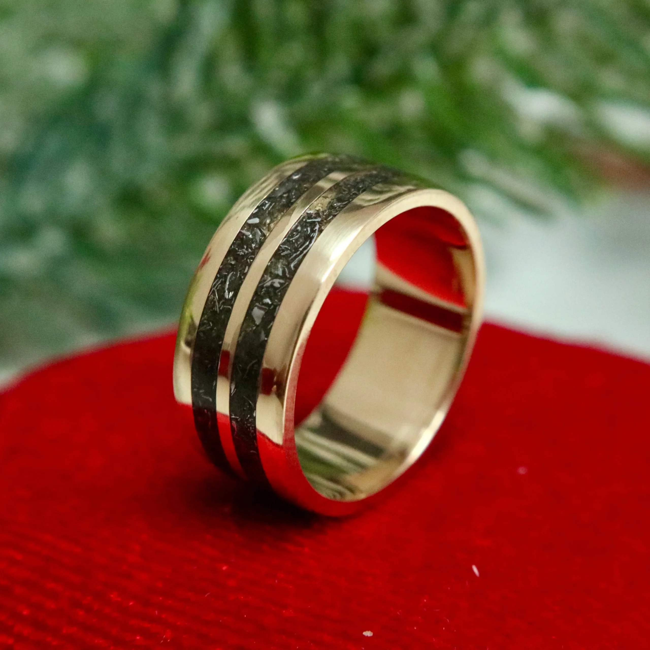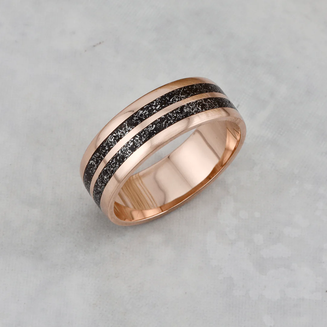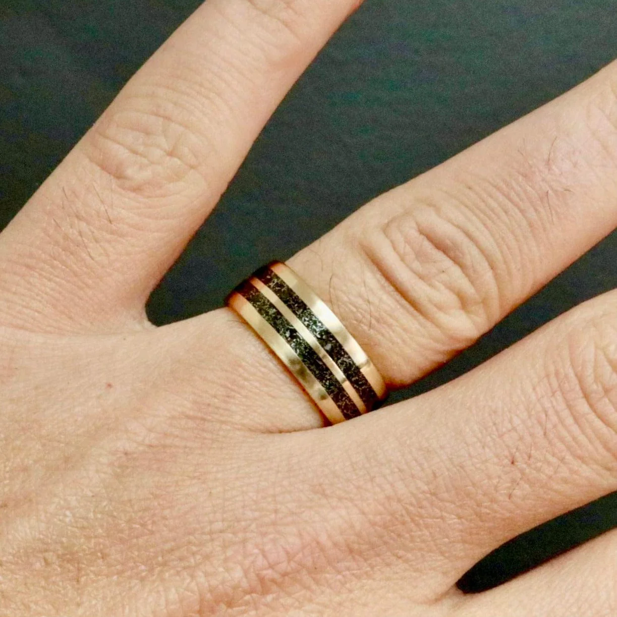 Offrez une alliance véritablement unique ! Chaque bague Poussières d’étoiles présente une incrustation de véritables fragments de météorite. La finition manuelle à la cire d’abeille naturelle protège la bague et met en valeur le contraste délicat entre le métal et la météorite. Le résultat : une surface douce, ni totalement lisse ni très texturée, pour un bijou au caractère singulier. Un symbole rare, parfait pour marquer un engagement ou souligner un moment d’exception.