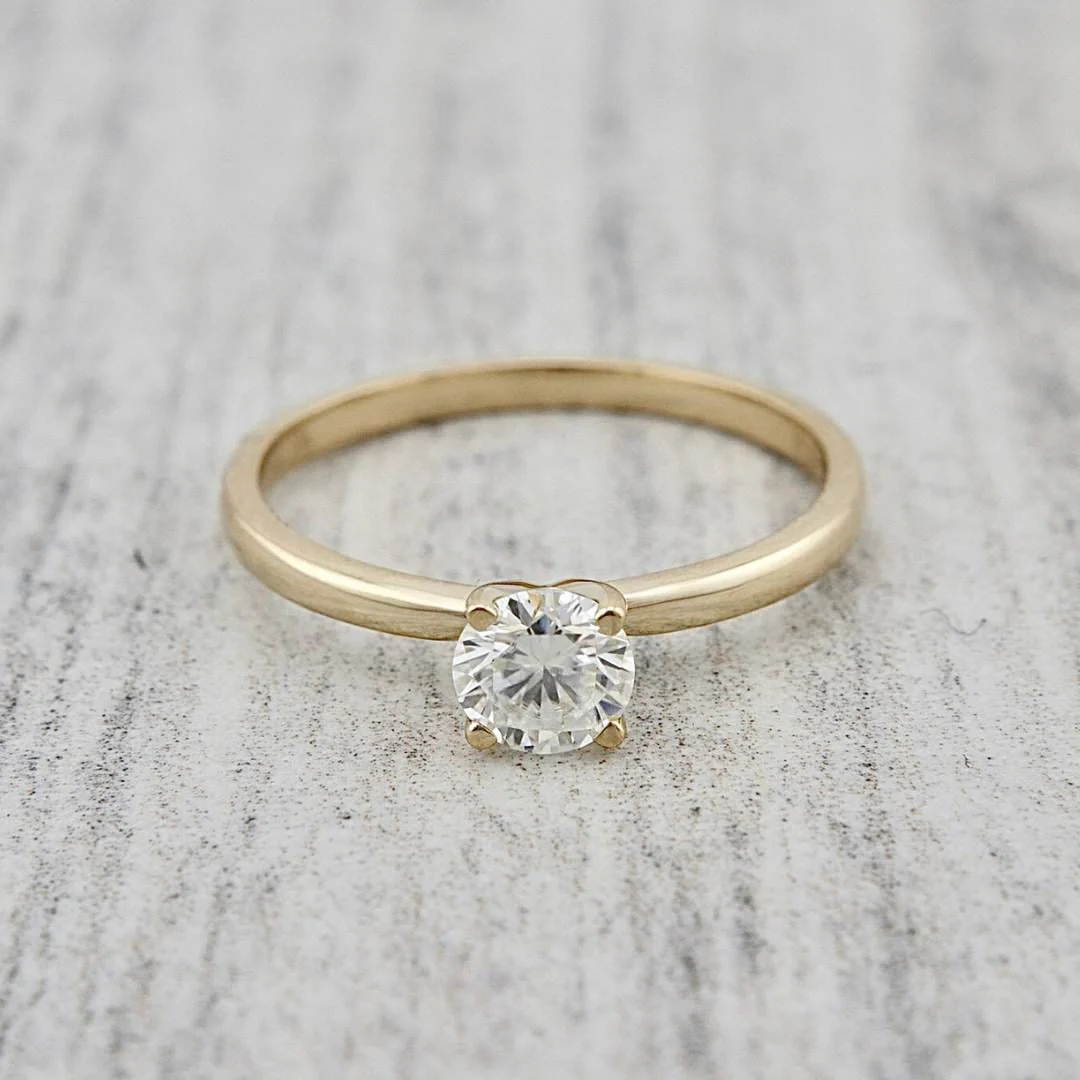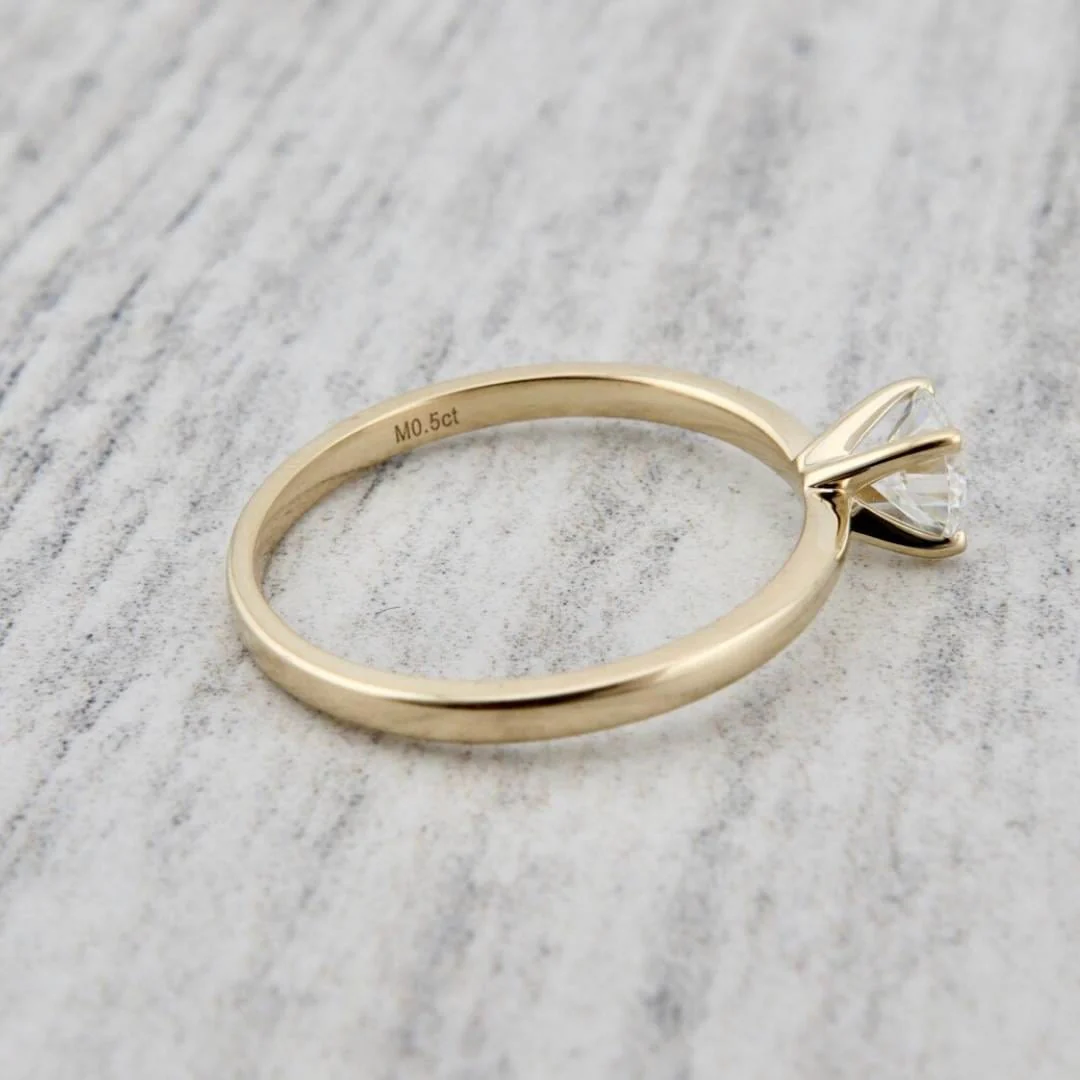 Dites-lui que votre cœur lui appartient avec cette bague solitaire exceptionnelle Mathieu Blanchard Signature de style solitaire. Cette bague met en valeur une scintillante moissanite, conçue en laboratoire et sertie sur griffes.
