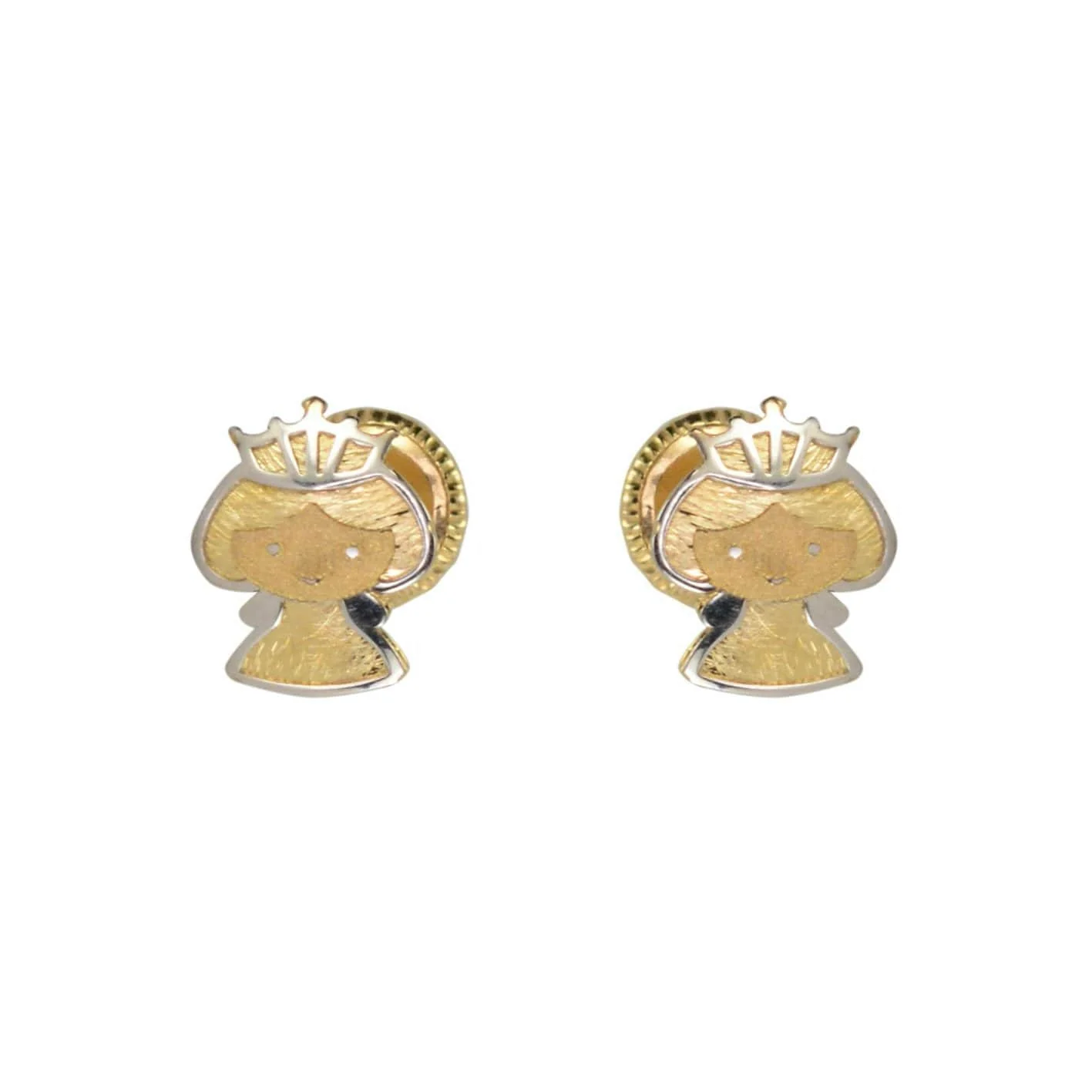 Boucles d’oreilles Royales, avec tiges vissées, en or blanc et jaune 10K. Dimension: 5 x 7 mm. Elles sont confortables et adaptées pour un enfant, mais aussi pour un adulte.