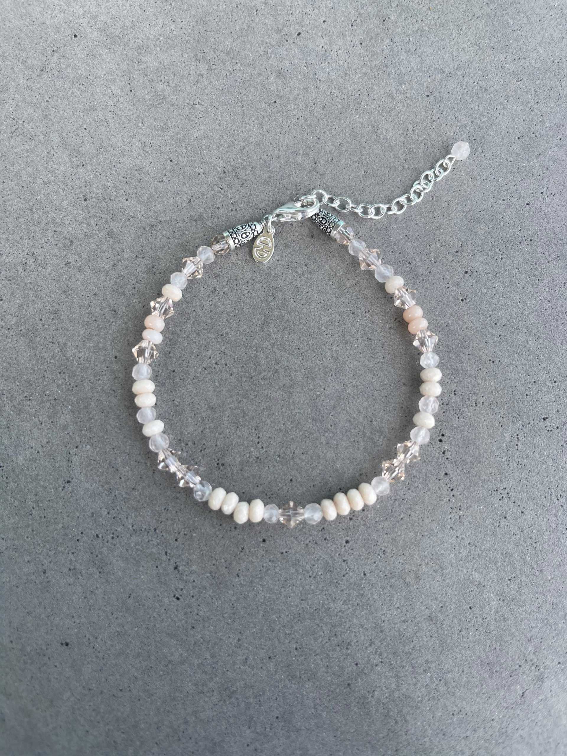 - Pierres: quartz rose (pierres semi-précieuses) et Swarovski