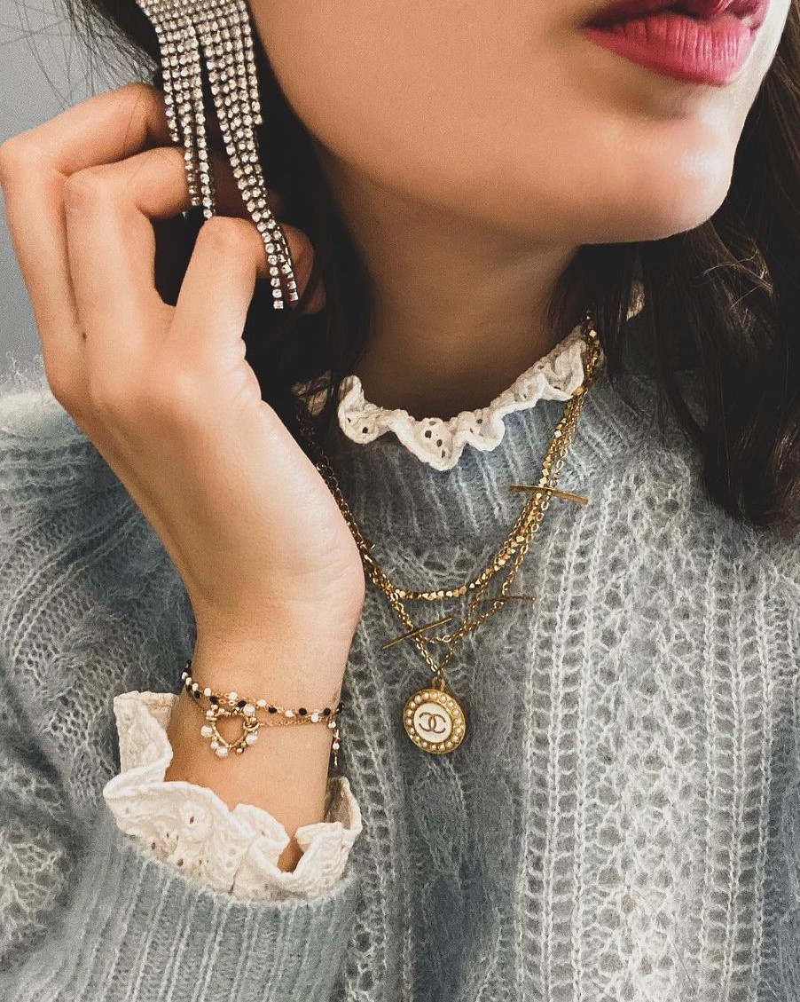 La tendance est, depuis plusieurs saisons, à l’accumulation. N’hésitez pas à mixer les matières (chaînes, pierres,…), les formes (chokers, multi-rangs,…), les longueurs et surtout les pendentifs.
