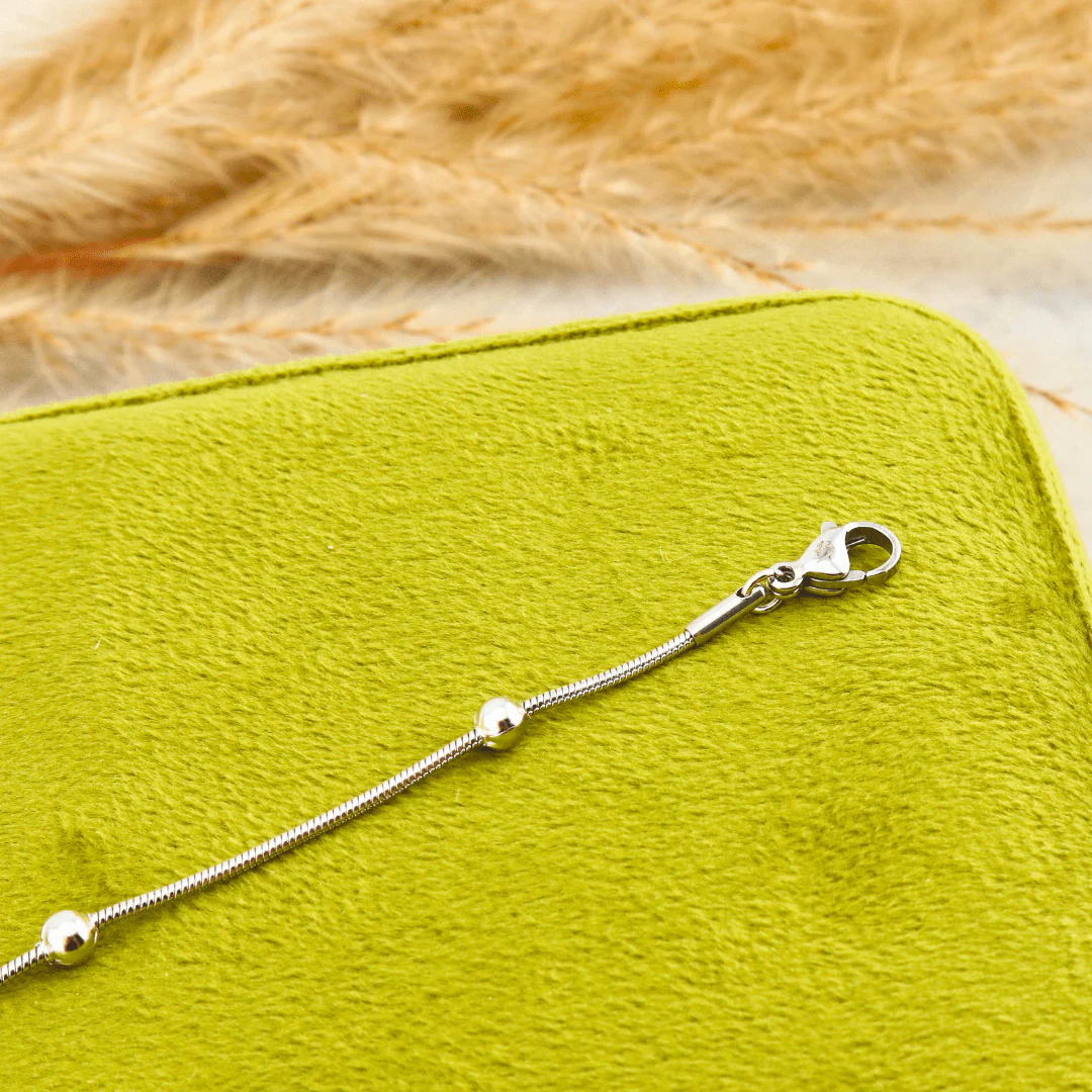 Cette chaîne de cheville offre un look minimaliste et intemporel. Fabriquée en acier inoxydable, elle résiste à l’eau et à l’usure du quotidien. Ajustable de 8 à 10 pouces, elle s’adapte confortablement à votre cheville. Une pièce discrète, mais stylée !