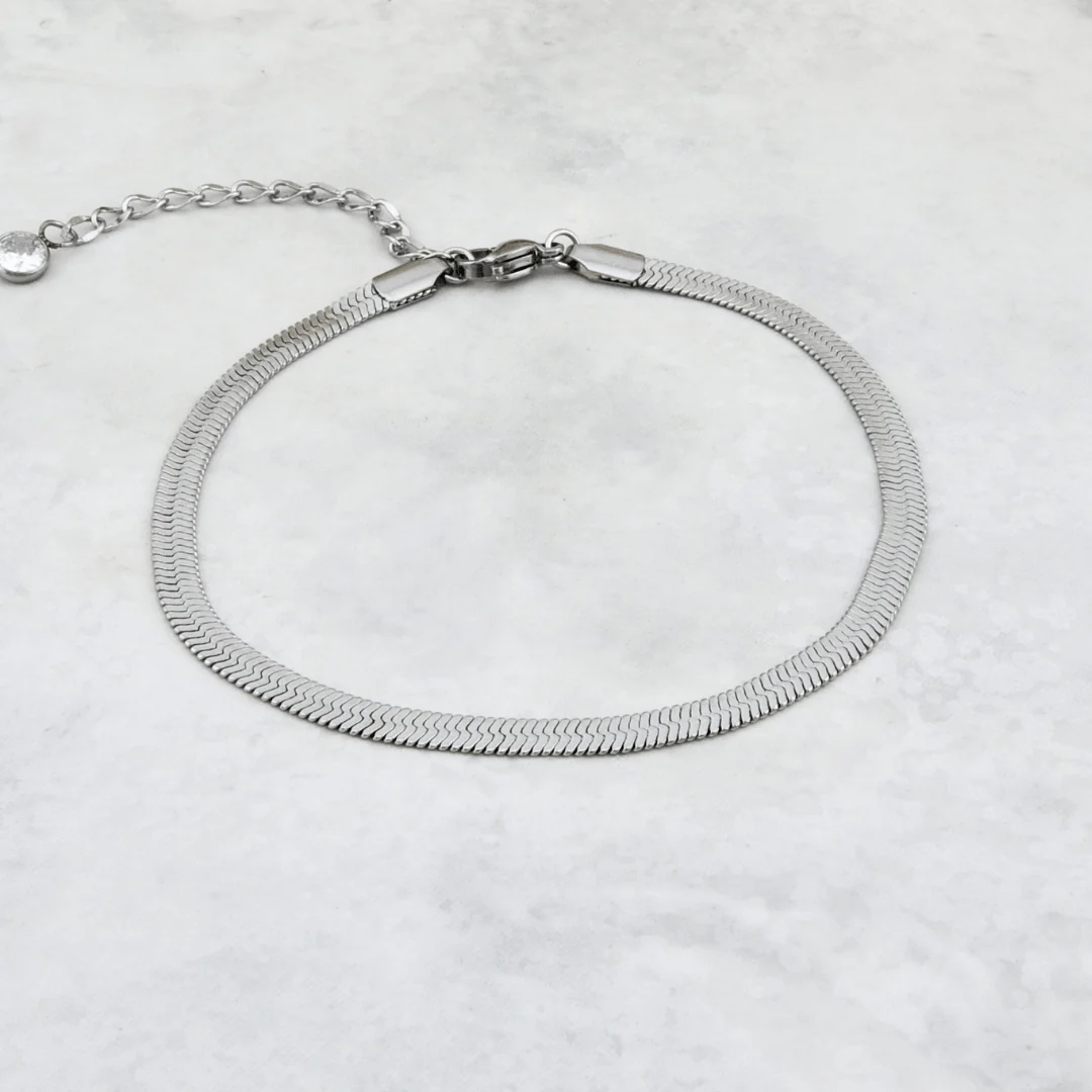 Avec sa maille Herringbone de 4 mm, cette chaîne de cheville au fini lisse et élégant apporte une touche raffinée à votre style. Ajustable de 8 à 10 pouces, elle s’adapte confortablement à votre cheville. Fabriquée en acier inoxydable, elle est résistante à l’eau et à l’usure quotidienne, tout en étant sécuritaire pour votre peau.