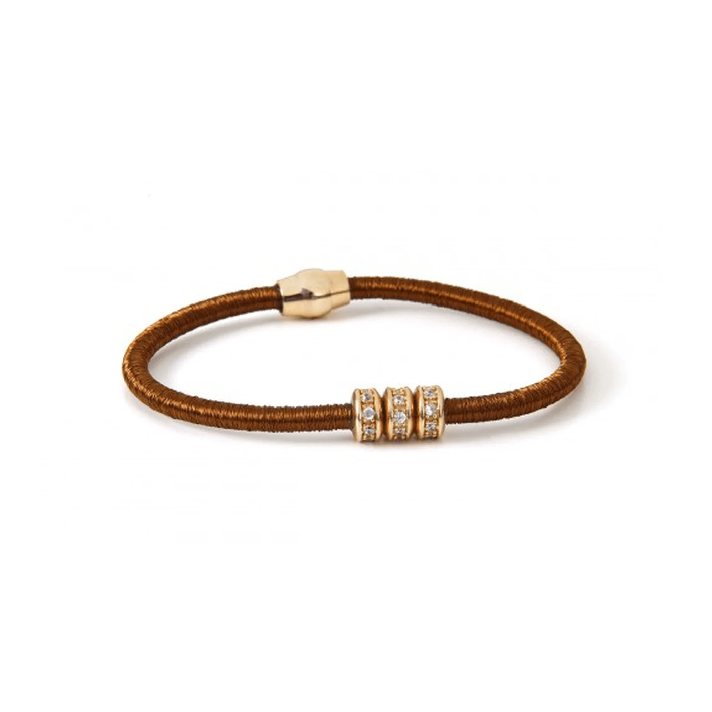 Bracelet de cuivre, argent plaqué or et cz. Conçu par Luca Lorenzini.