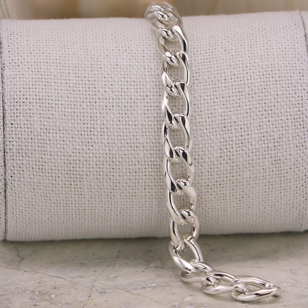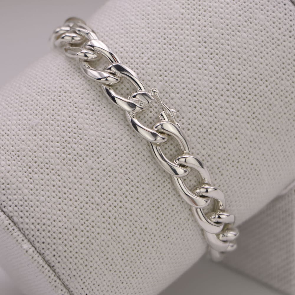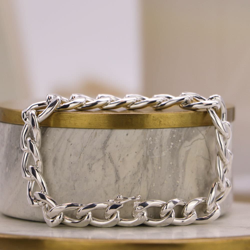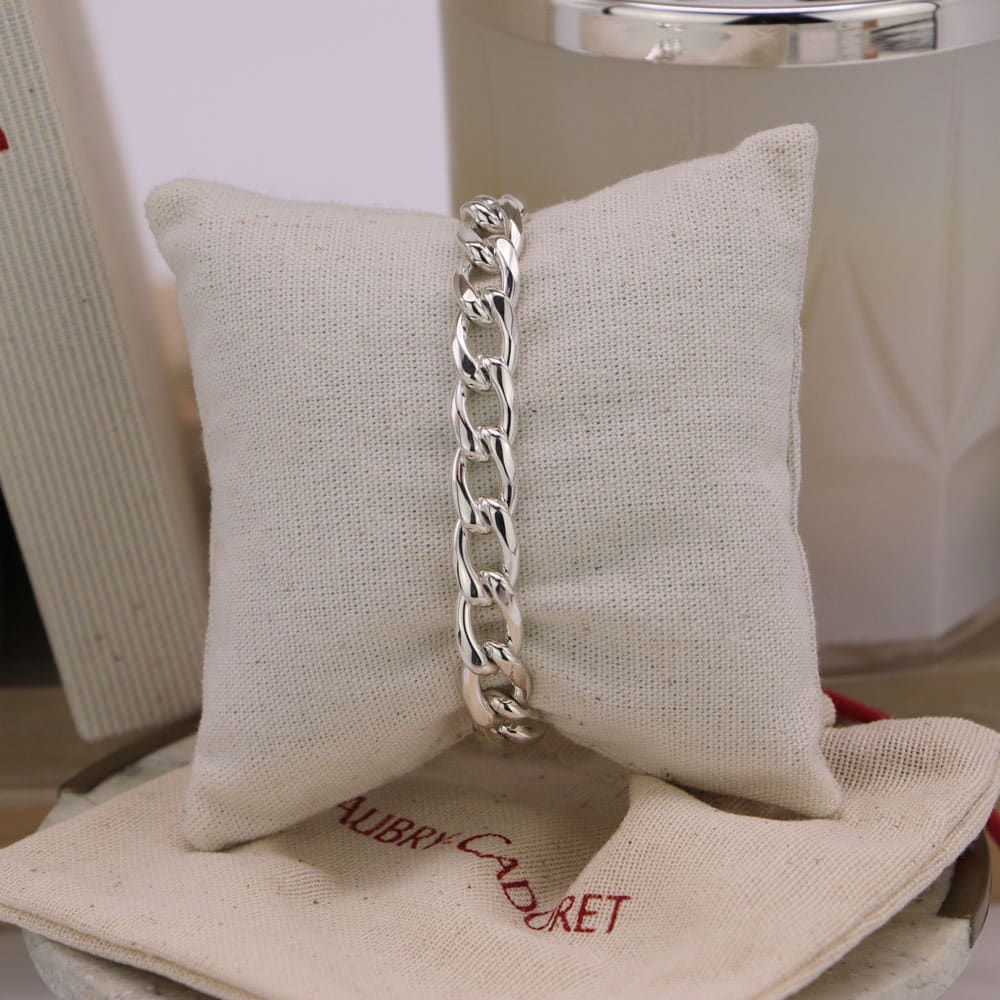 Cet élégant bracelet en argent massif, sobre et intemporel, peut se porter seul ou accompagné d’autres bracelets pour plus d’originalité. Son épaisse maille gourmette de 9mm, en fait un bracelet chic et facile à porter.