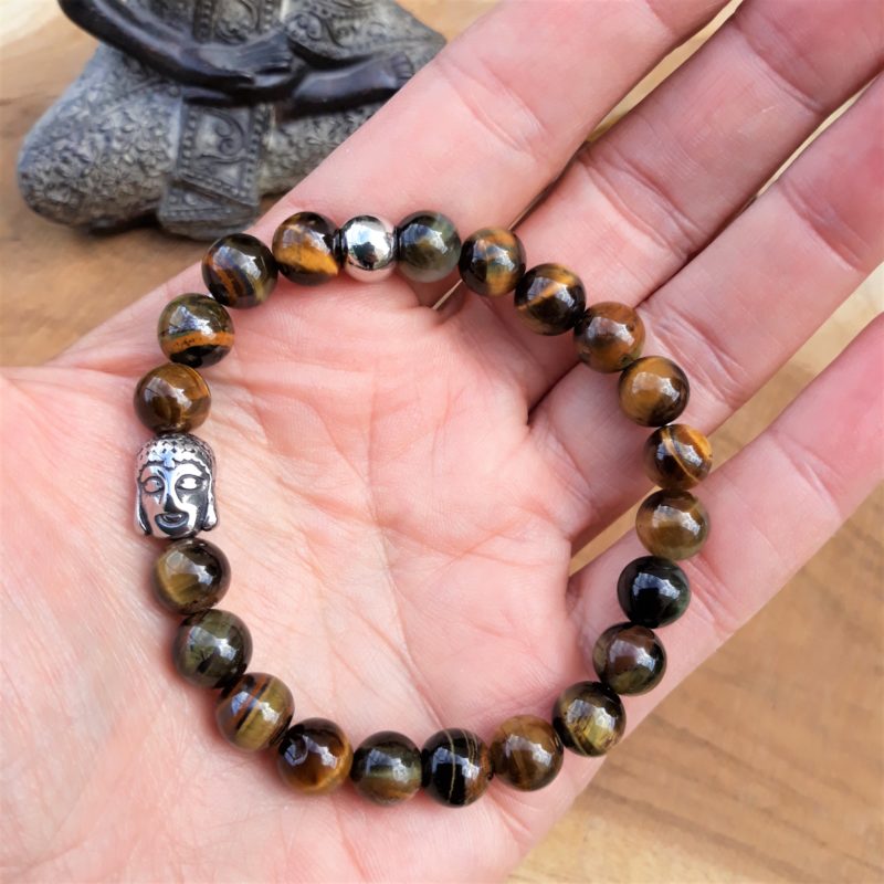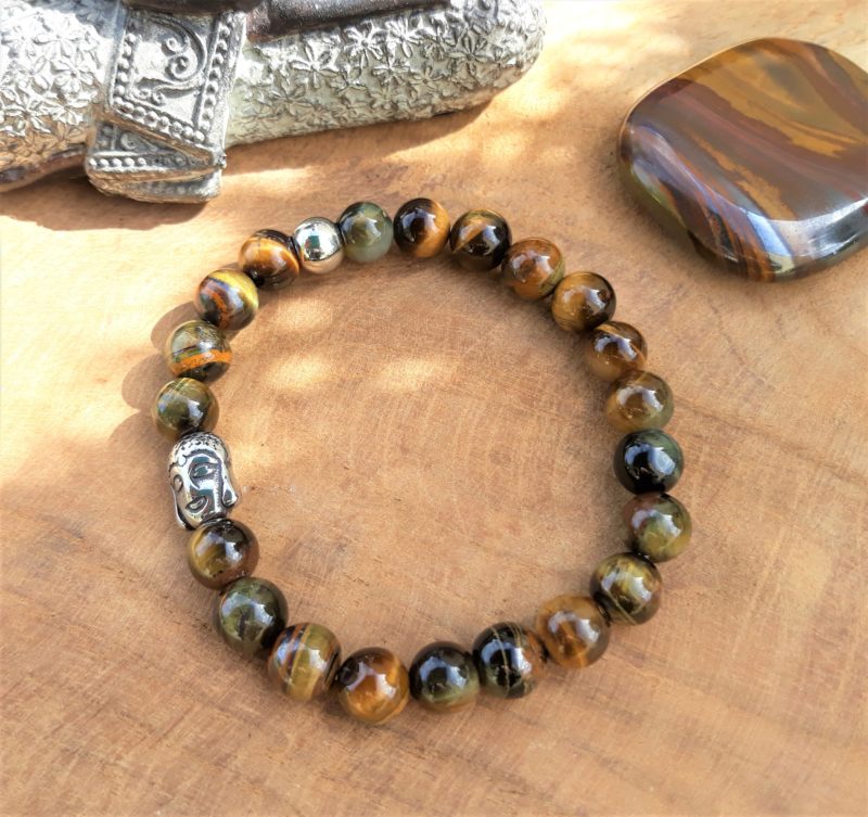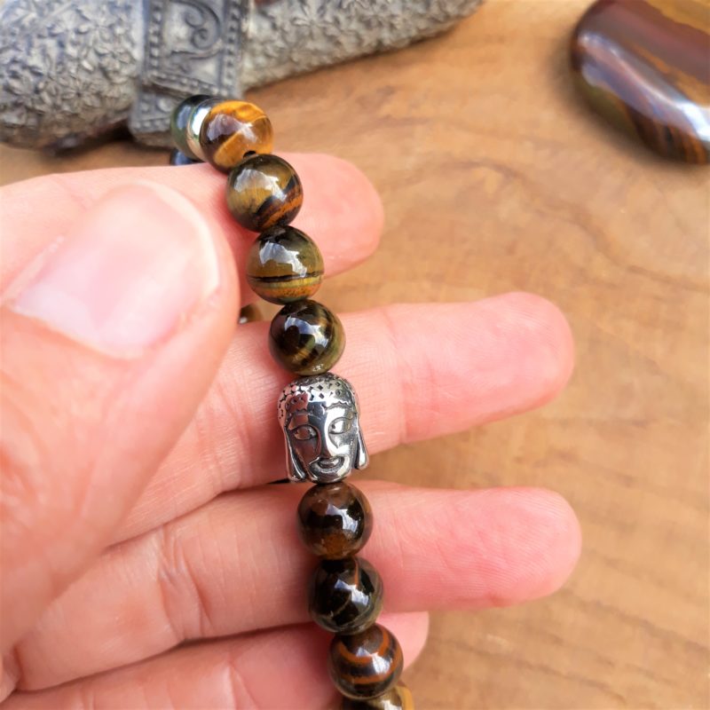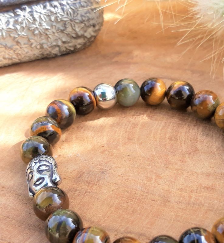 Orné d’une belle perle bouddha en acier inox et perle acier inox (monté sur fil élastique plat, doublé et très résistant)
