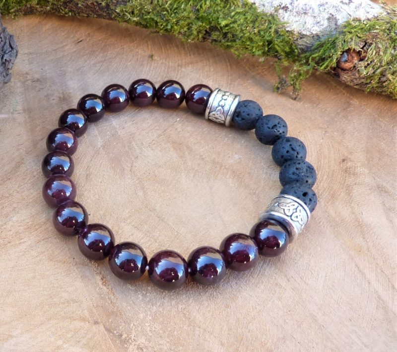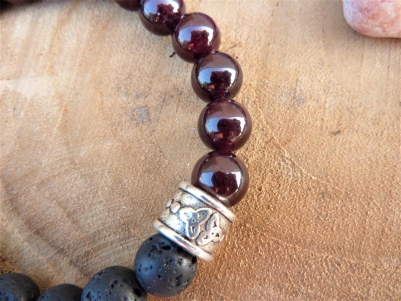 Grande énergie, détermination, ancrage et créativité pour ce beau bracelet celtique en grenat, pierre de lave