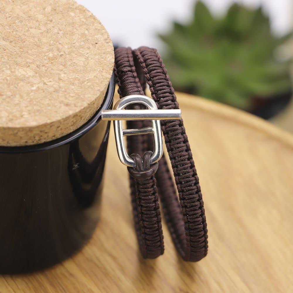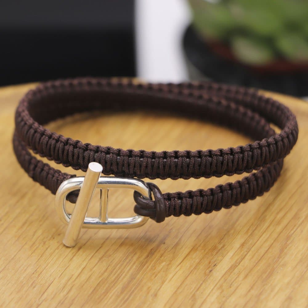 Association du cuir, matière noble, du nylon, durable et facile à porter, et de l’argent massif ,gage de qualité, ce bracelet sobre et élégant saura mettre votre poignet en valeur.