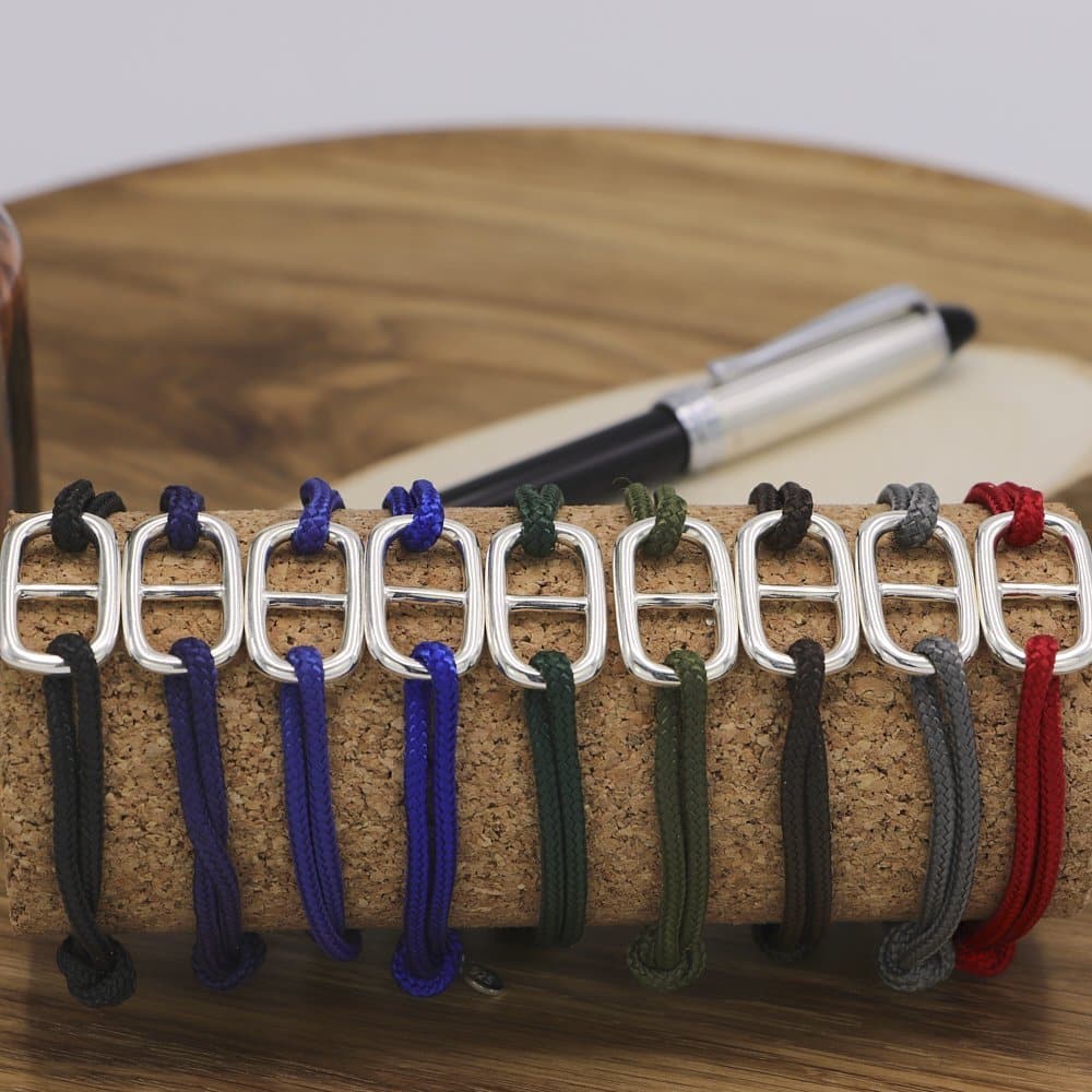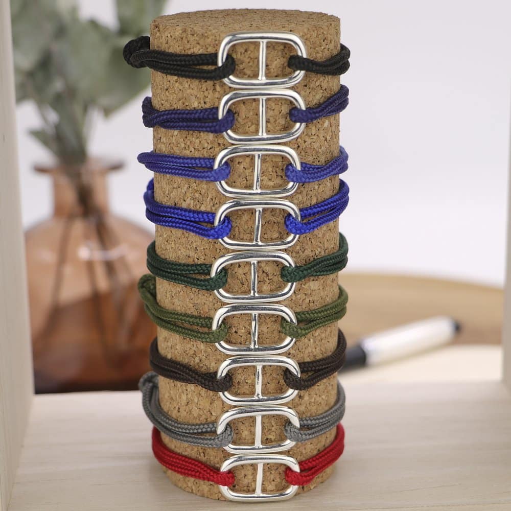 La paracorde ou aussi appelée corde de parachute, est un cordon uni très résistant que l’on détourne ici de son usage pour faire de ce bracelet un bijou durable et masculin. Ces liens, appelés aussi « bout » en terme nautique, bien connu des marins, sont particulièrement résistants aux éléments. Mis en place à votre poignet, vous ne le quitterez plus!