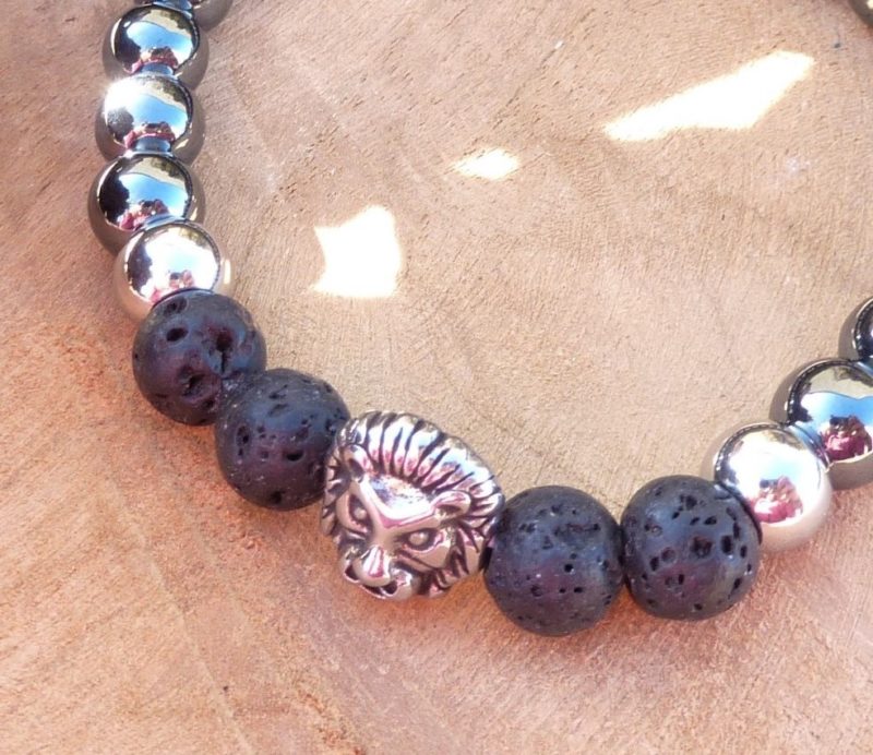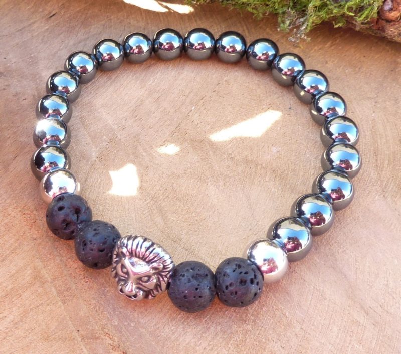 Orné d’une jolie perle en acier inox tête de lion (monté sur fil élastique plat, doublé résistant)