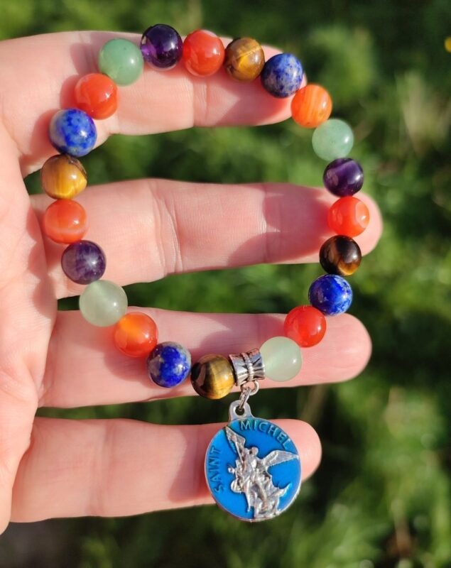 Joli bracelet Saint Michel archange avec pierres naturelle mixtes
