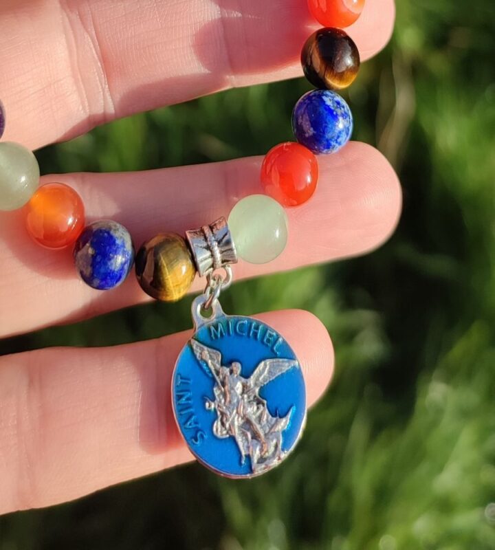 Bracelet Saint Michel Archange pierres naturelles et médaille émail