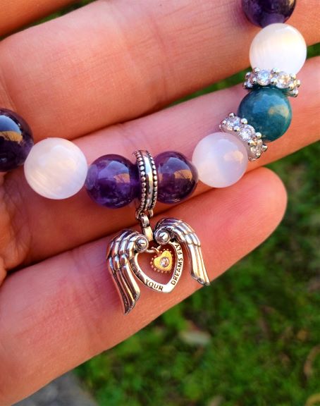 Ce que vous apporte votre bracelet sélénite et améthyste, apatite Femme : ” la pierre des anges “, totale sérénité et confiance