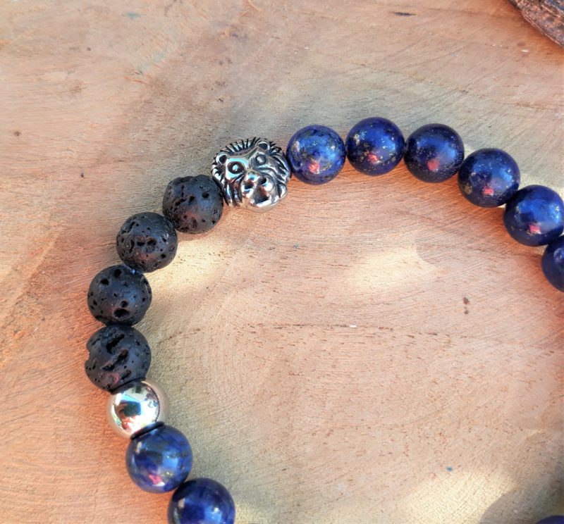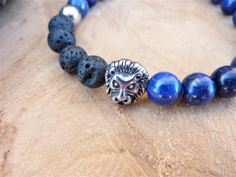 Sérénité, ancrage, ressourcement et communication et protection pour ce beau bracelet zen Homme lapis lazuli et pierre de lave