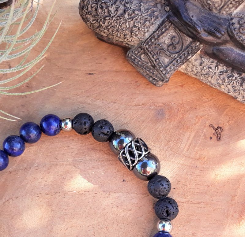 Sérénité, ancrage, ressourcement et communication et protection pour ce beau bracelet lapis lazuli, hématite et pierre de lave