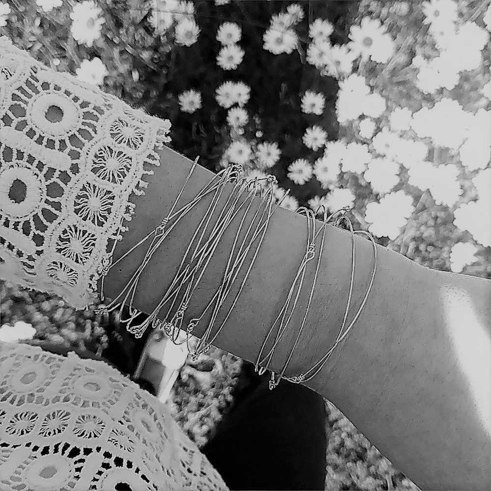 Gang de joncs en fil précieux argent 925 ultra fins au look brut et une pointe rock, en effet, plus vous les portez et plus ils vont prendre un aspect très légèrement déformé totalement voulu.