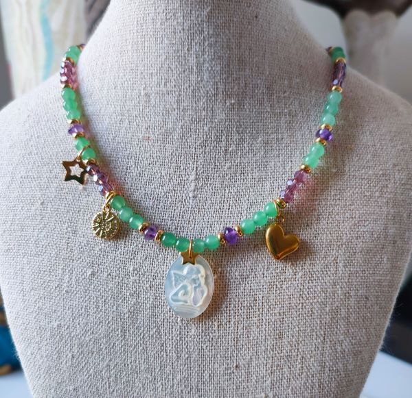 Perles d’aventurine et améthyste, perles rocaille violettes