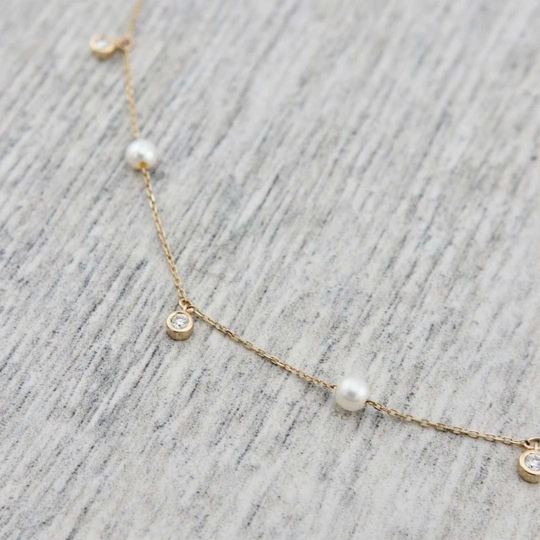 Donnez à votre style une touche élégante avec ce splendide collier en or 14K orné de diamants et de perles. Son design étincelant et ses teintes lumineuses sauront parfaire toutes vos tenues. Affirmez votre liberté et votre confiance en adoptant l’élégance de ce collier. Qu’il s’agisse d’un événement spécial ou d’une soirée raffinée, ce bijou sophistiqué sera l’accessoire idéal pour votre garde-robe.