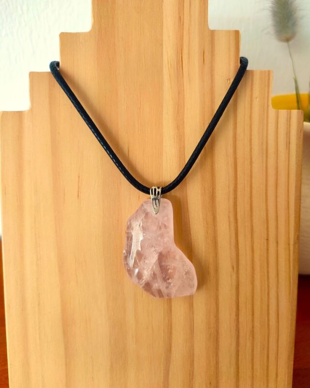 Le pendentif unique et original en quartz rose vous apportera douceur, réconfort, une aide au niveau du chakra du cœur pour apaiser vos blessures sentimentales et votre enfant intérieur, tout en vous fortifiant.