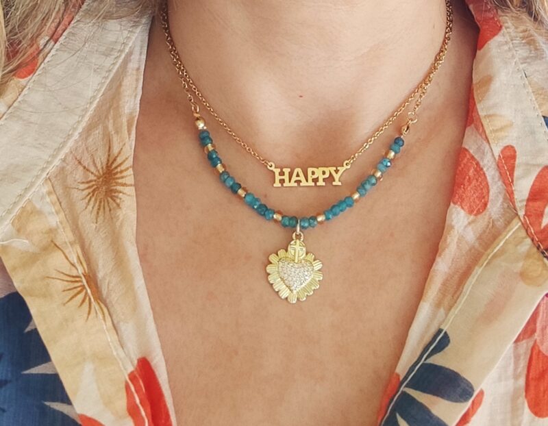 Acier inoxydable couleur or avec pendentif plaqué or et perles 3 mm apatite
