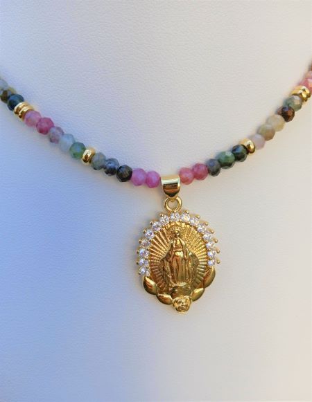 Collier amour inconditionnel Sainte Marie en acier inox or et tourmaline