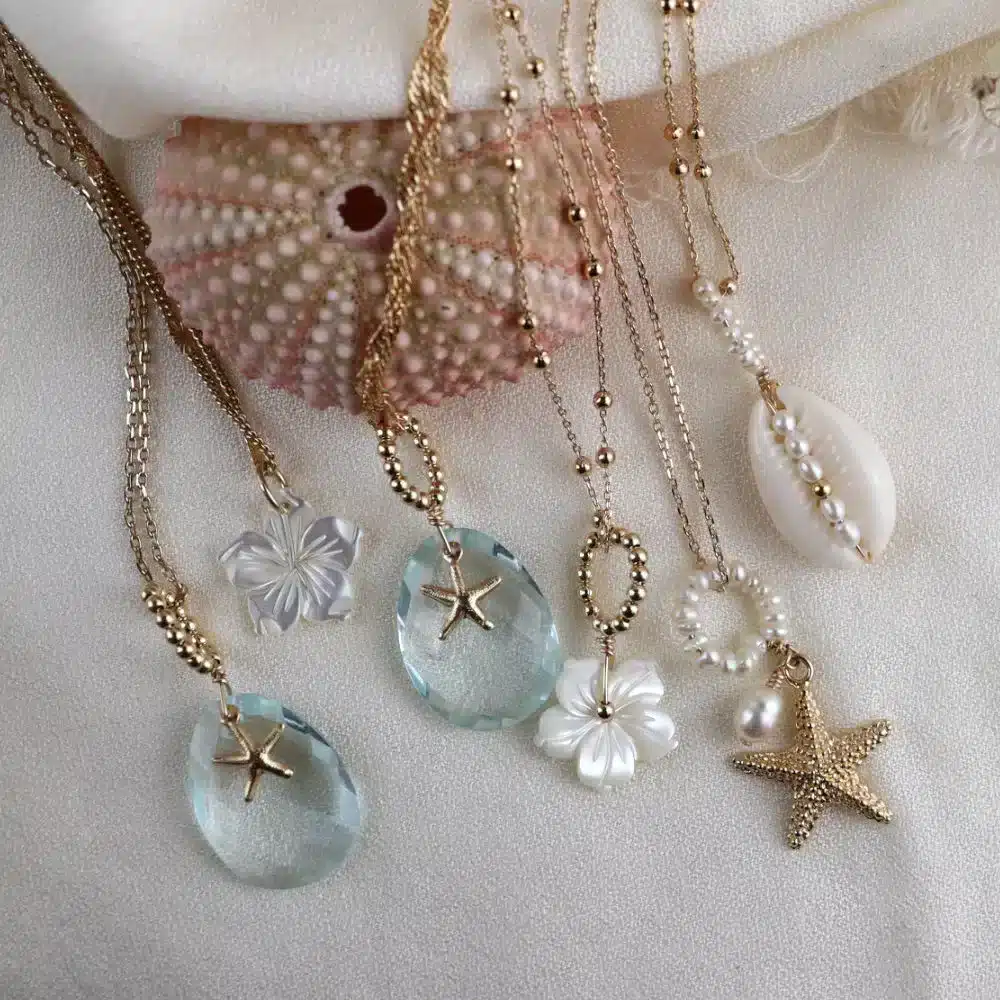 En solo ou en superposition pour la touche mode, nos colliers sublimeront avec subtilité et élégance votre décolleté. La tendance est, depuis plusieurs saisons, à l’accumulation. N’hésitez pas à mixer les matières (chaînes, pierres,…), les formes (chokers, multi-rangs,…), les longueurs et surtout les pendentifs.
