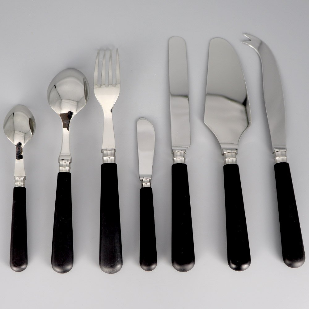 Cette ligne de couverts en inox est une collection des arts de la table de tradition française, disponible en deux couleurs : en ivoire et noir.