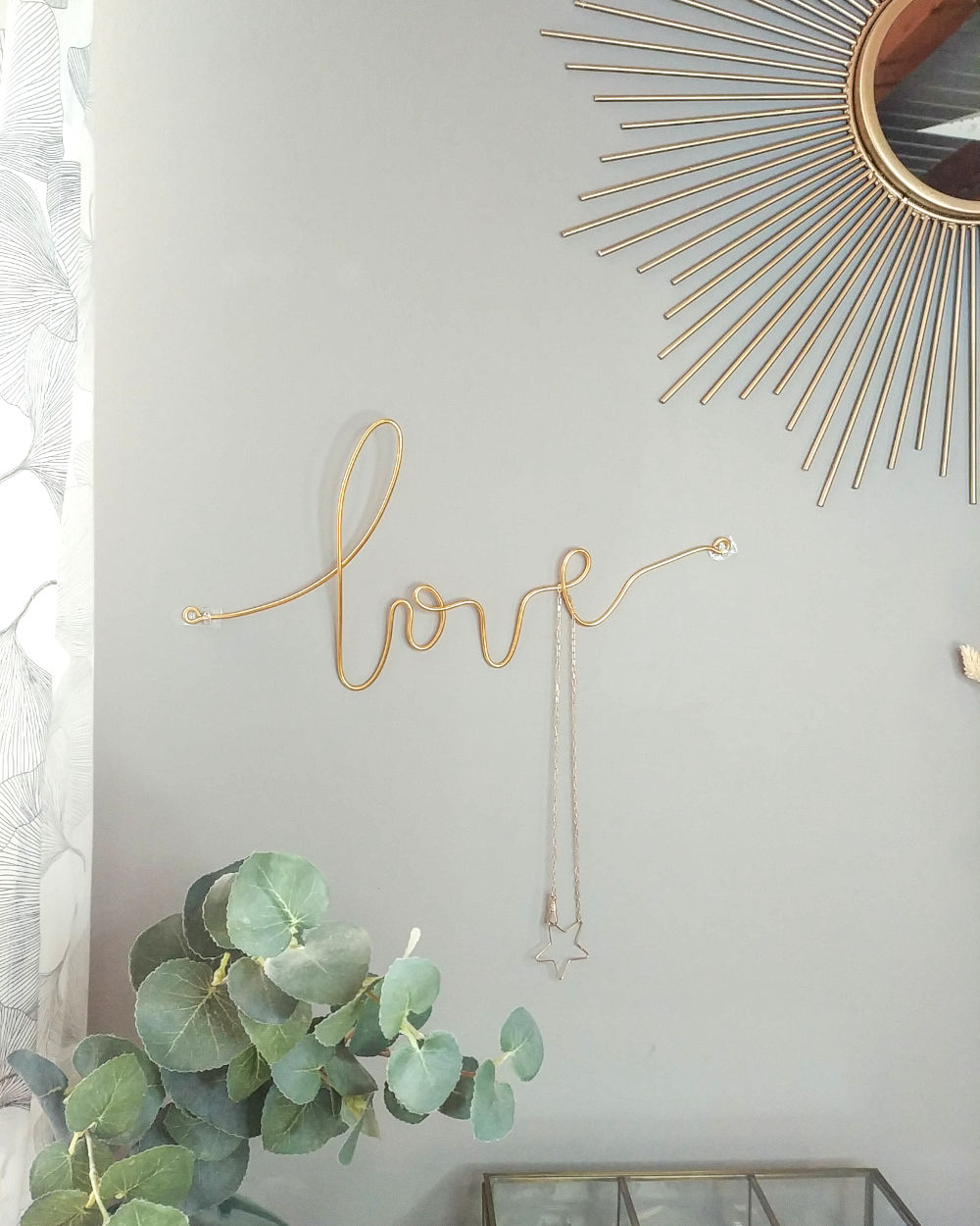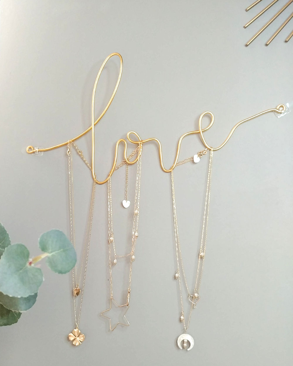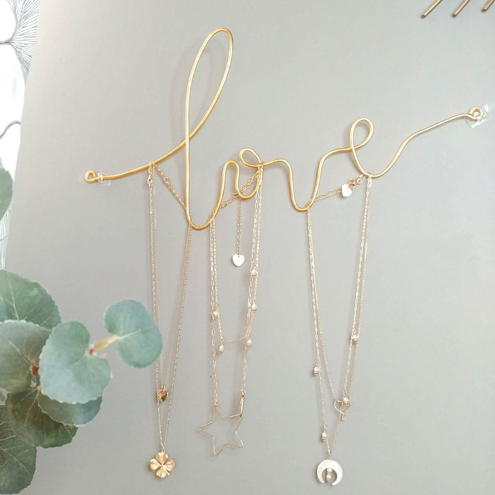 Joignez l’utile à la déco, le mot « LOVE » devient porte-bijoux: vos colliers ne s’emmêlent pas et vous avez toujours à portée de regard vos pièces favorites.