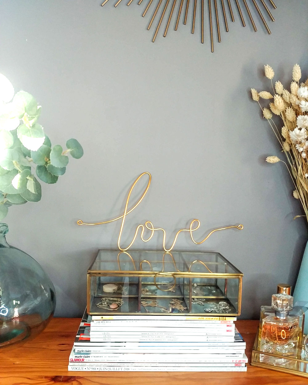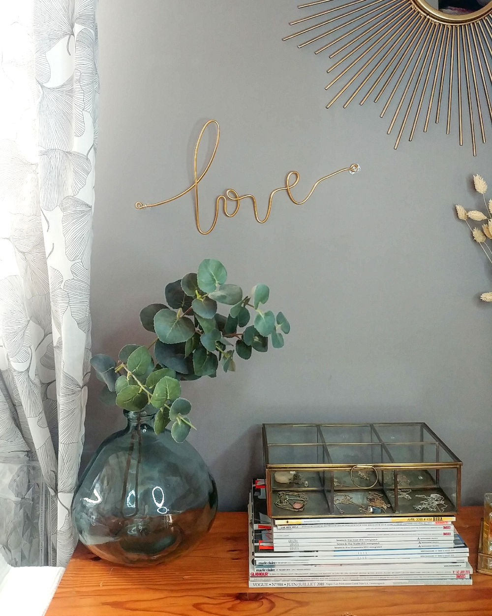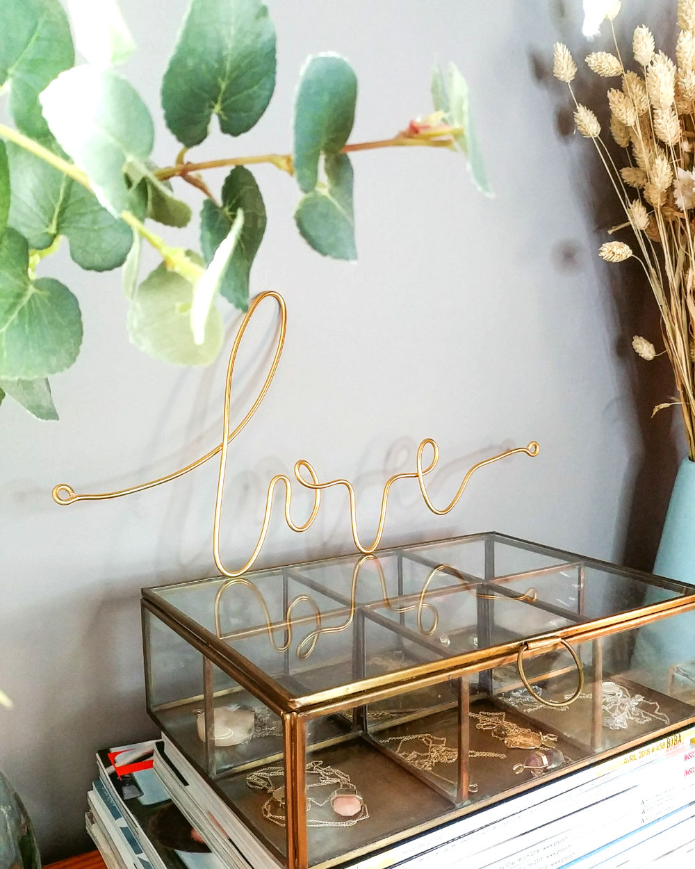 Joignez l’utile à la déco, le mot « LOVE » devient porte-bijoux: vos colliers ne s’emmêlent pas et vous avez toujours à portée de regard vos pièces favorites.