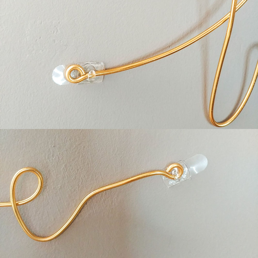 Personnellement, j’utilise les crochets transparents COMMAND (voir photos) qui permettent de fixer le mot sans trous, sans outils et surtout sans abîmer le mur (testé & approuvé!). Mode d’emploi disponible ici (paragraphe Crochets avec Languettes Transparentes).