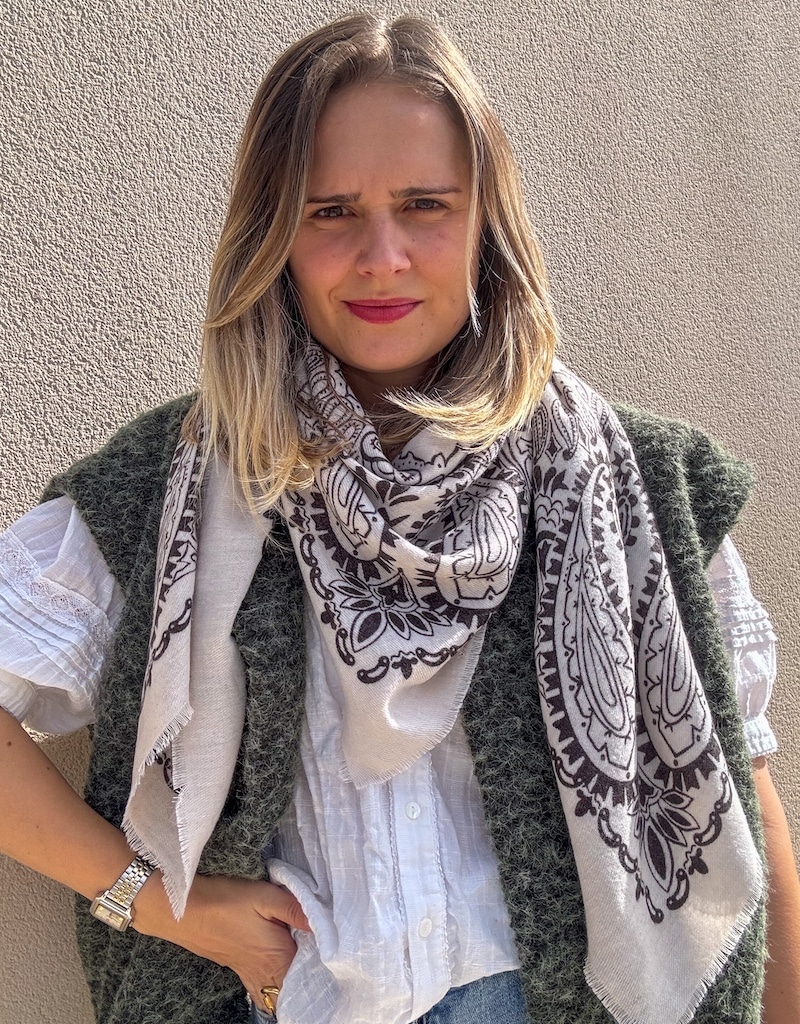 Grand Foulard tout doux imprimé bandana écru qu’on adore à porter cet hiver !