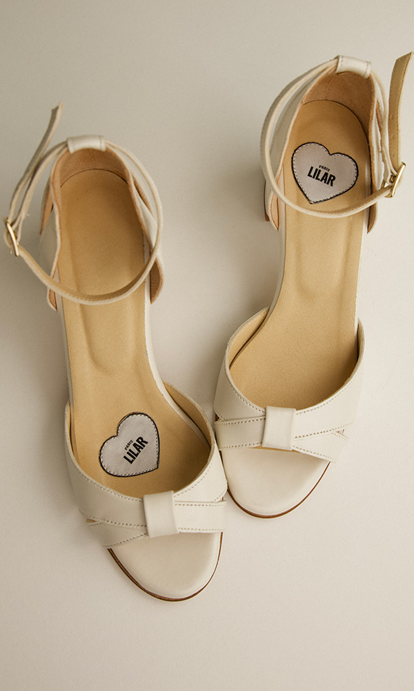 On aime son confort absolu et ses détails élégants. De couleur blanc naturel, elles s’accordent parfaitement avec toutes nos robes de mariée.
