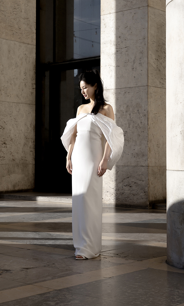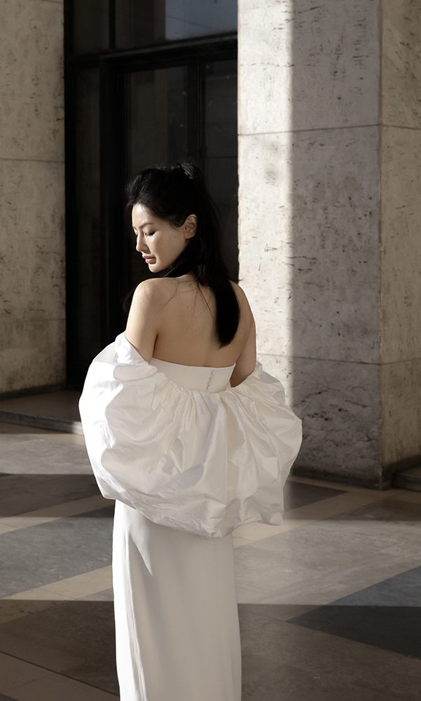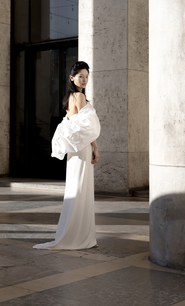 I love this charismatic dress full of poetry. You can also wear the dress without its cloud of silk as a second outfit. It’s even better!