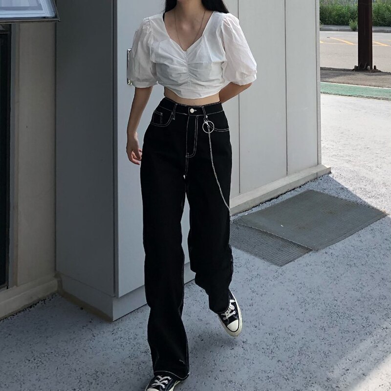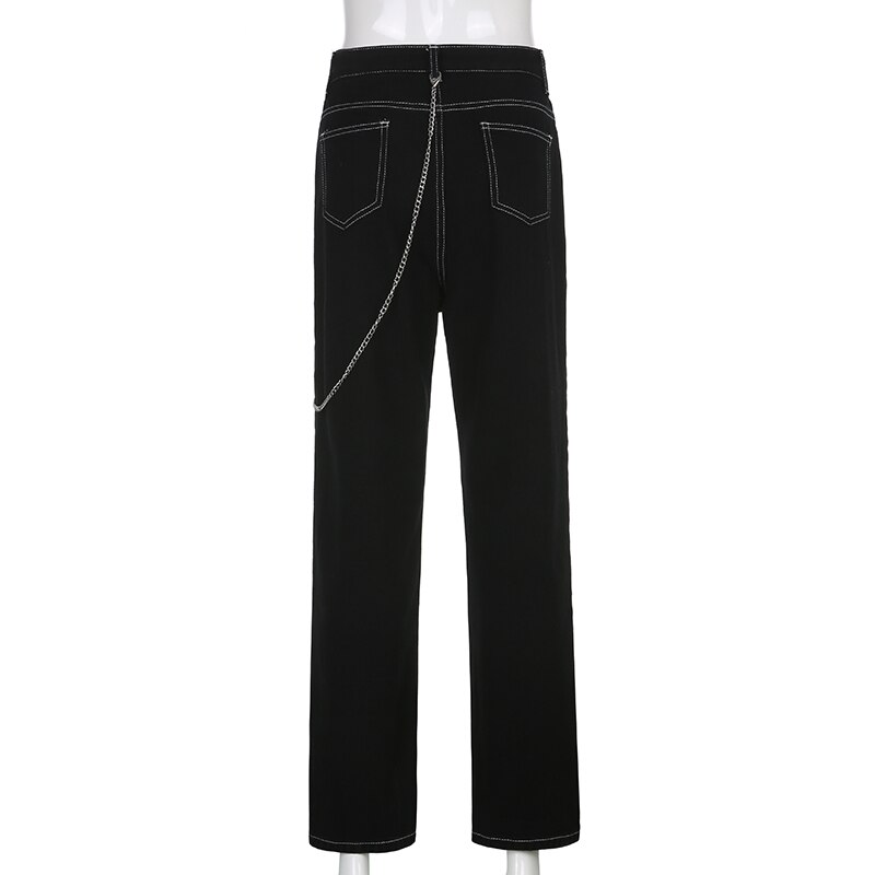 Ce jean gothique pour femme est tout simplement époustouflant ! Il suffit de bien le marier et vous obtiendrez une tenue extraordinaire et sexy. Sa couleur noire le rend encore plus surprenant, car vous pouvez le porter n’importe où.