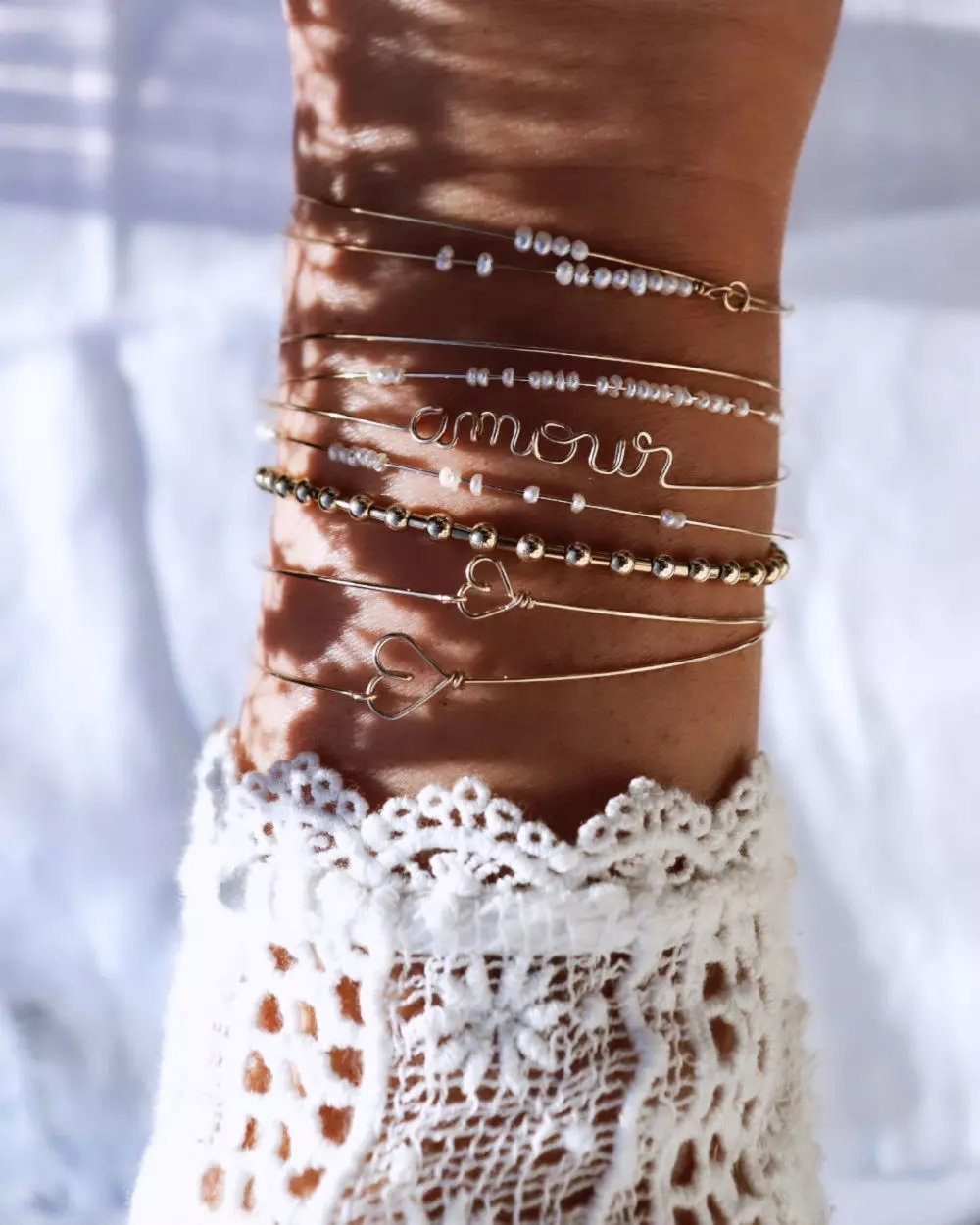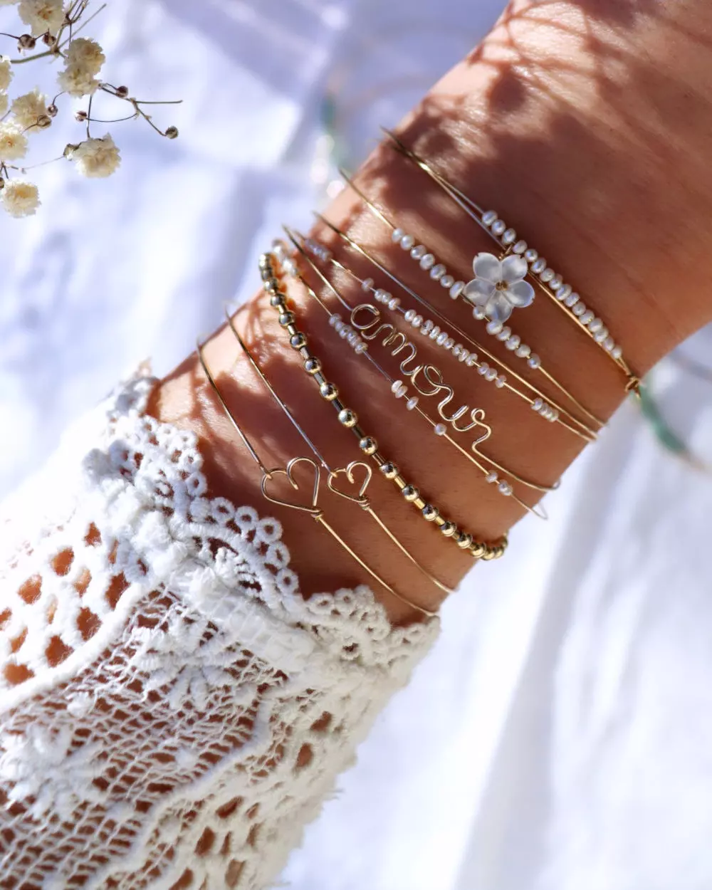 Le jonc va perdre de sa rondeur pour s’adapter à votre poignet mais le mot & le cœur ne vont pas se déformer.