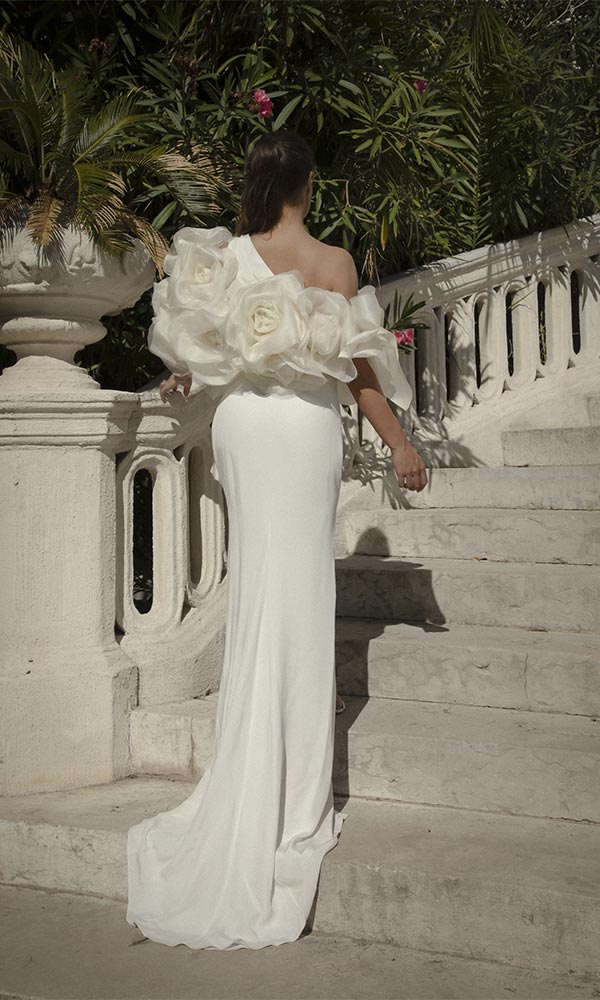 An exceptional couture overcoat composed of roses, handcrafted and sewn one by one in our workshop. Hours of work are spent to give you an unforgettable look.