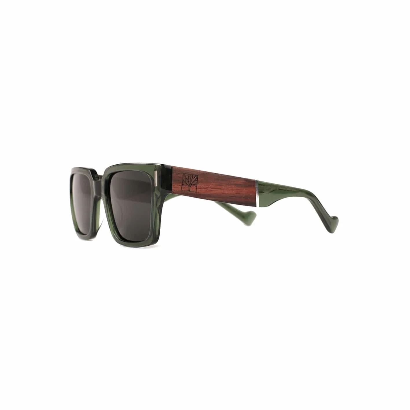 - Monture: acétate (vert olive transparente) + épingles en métal