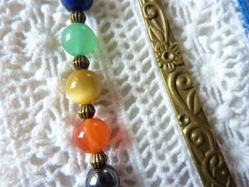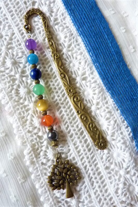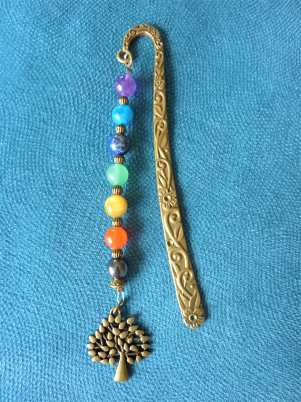 Joli marque page chakras stylisé couleur bronze avec un arbre de vie