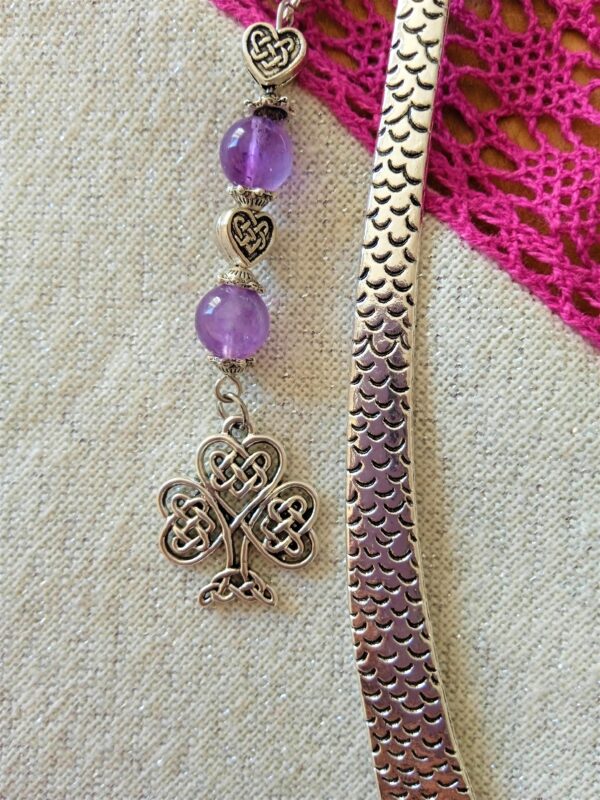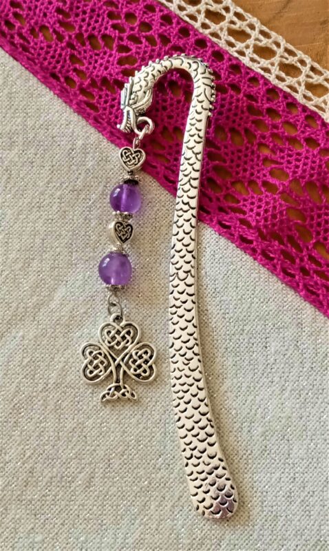 Joli marque page celtique avec un dragon, des améthystes et un arbre de vie