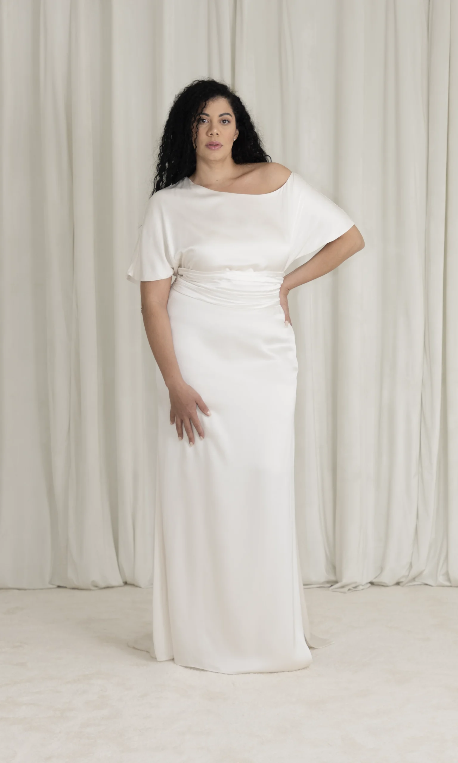 La ceinture plissée en 100% satin de soie est en option : 400 €