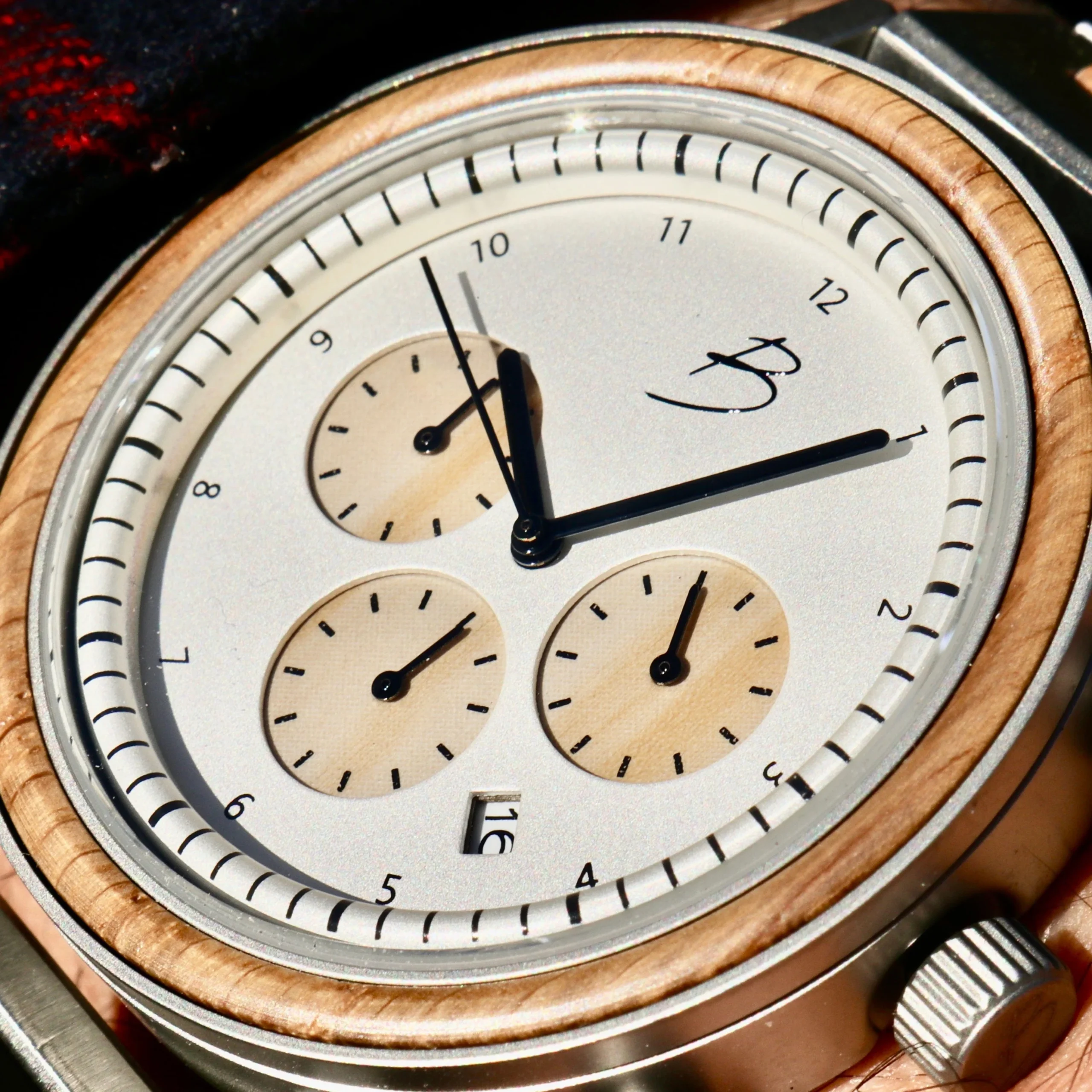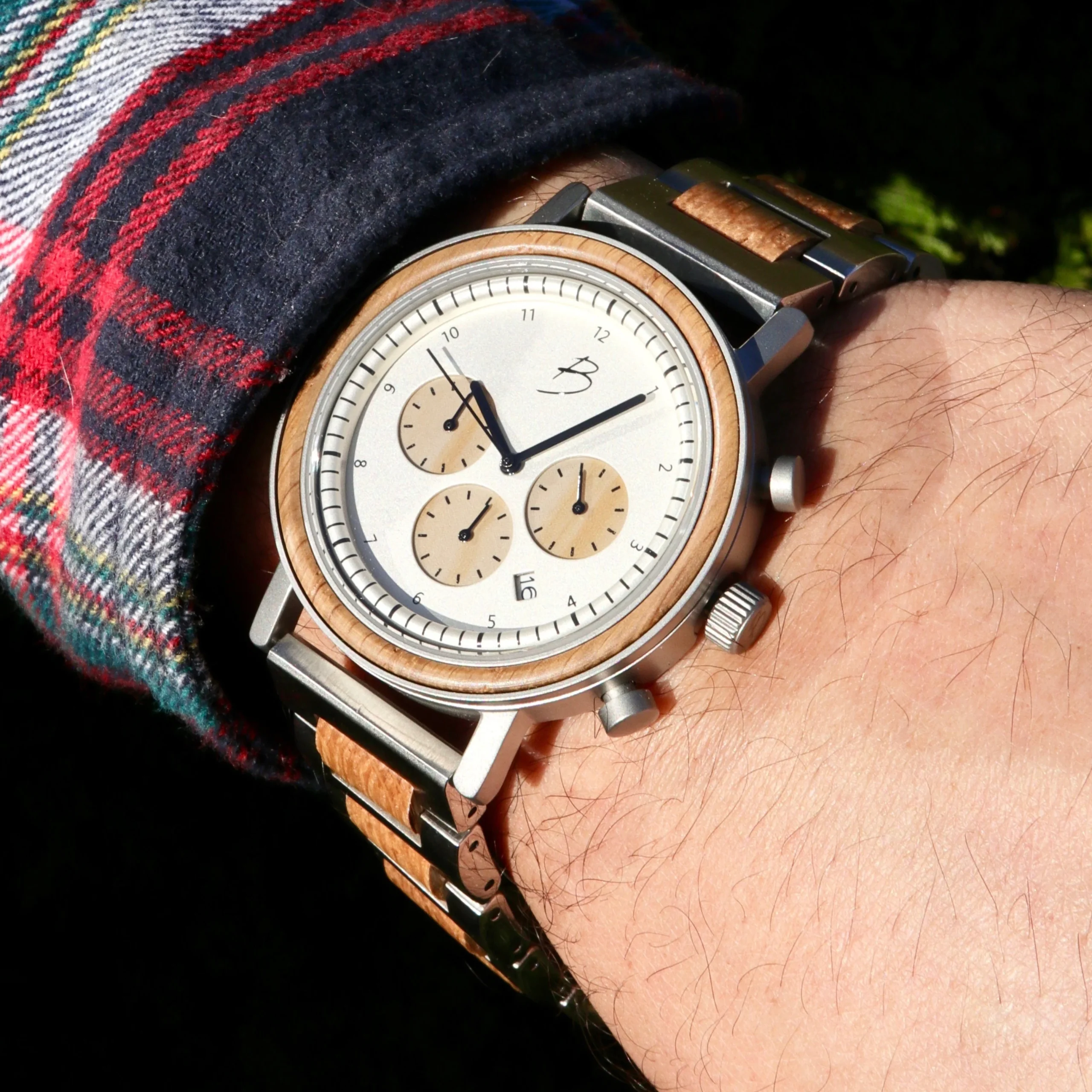 Le grain du bois, comme les empreinte d’une main, est unique, ce qui rend chaque montre entièrement différente. Chaque montre est fabriqué avec grand soins, pour qu’elle soit un chef-d’œuvre unique en son genre. Passez à un autre niveau et rendez l’expérience encore plus spécial avec une gravure personnalisée, gravée au dos de la montre.