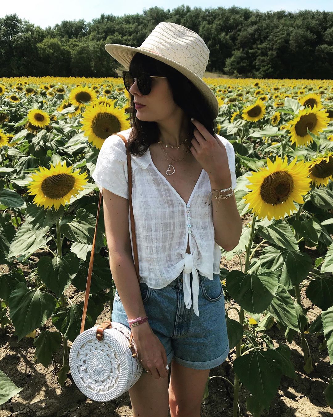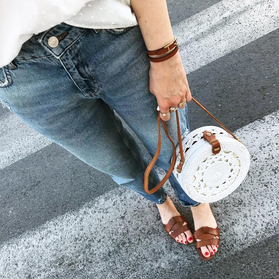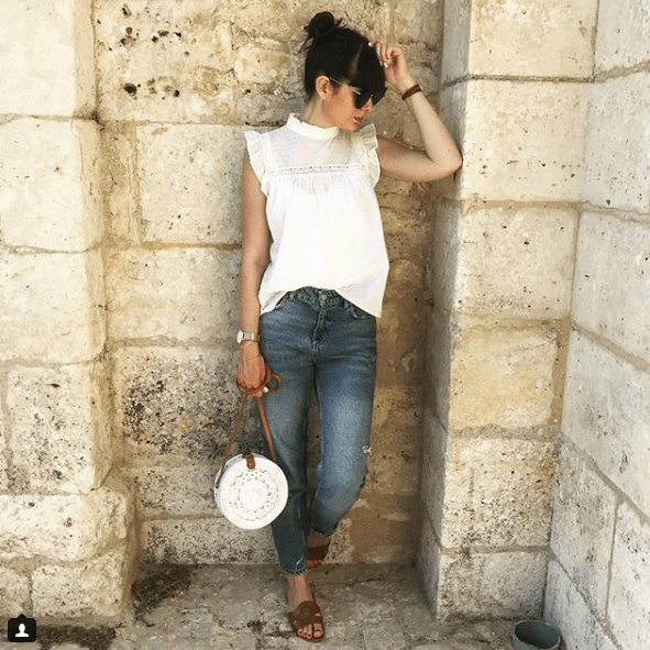 On peut également afficher un look rétro et casual avec un t-shirt brodé (disponible ici), un jean flair ou un short et des sandales en cuir.