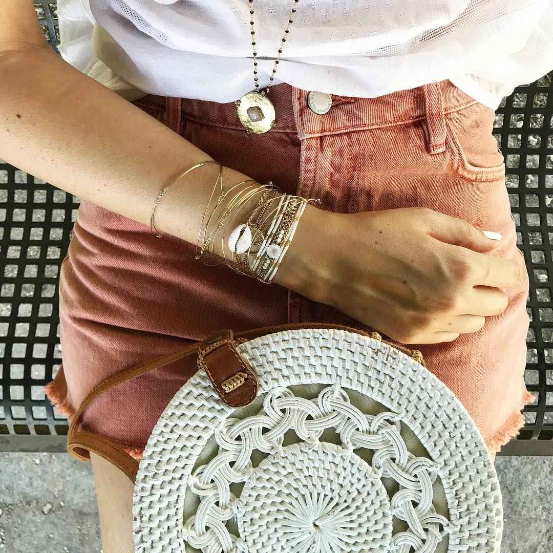 Assez grand pour y glisser tous vos essentiels comme téléphone, portefeuille et maquillage mais également assez petit pour vous suivre du matin jusqu’au soir, en vacances ou en ville. C’est le compagnon parfait pour tous vos looks. On dit out! aux gros cabas en cuir et bonjour au petit sac rond au top de la tendance!