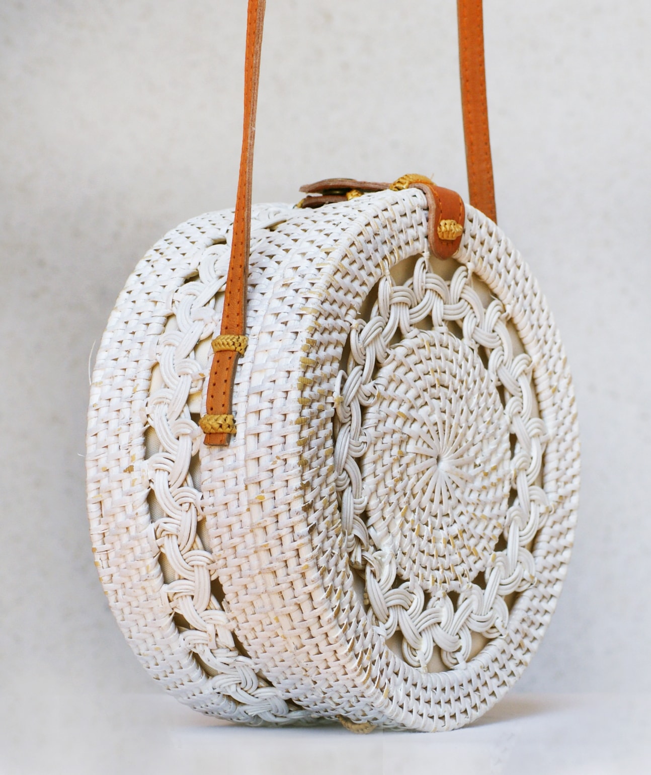 Ces mignons petits sacs ronds sont fait à la main avec passion et amour à Bali. Ils sont fabriqués à partir de tiges d’Ata (similaire au rotin) trouvées dans une forêt située à l’est de l’île de Bali. Cette plante est très résistante à l’humidité et très durable dans le temps.