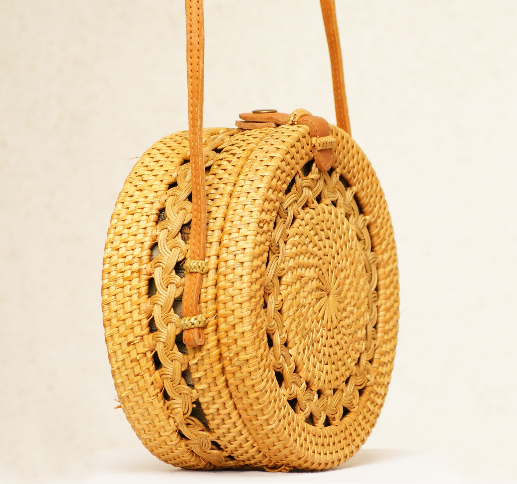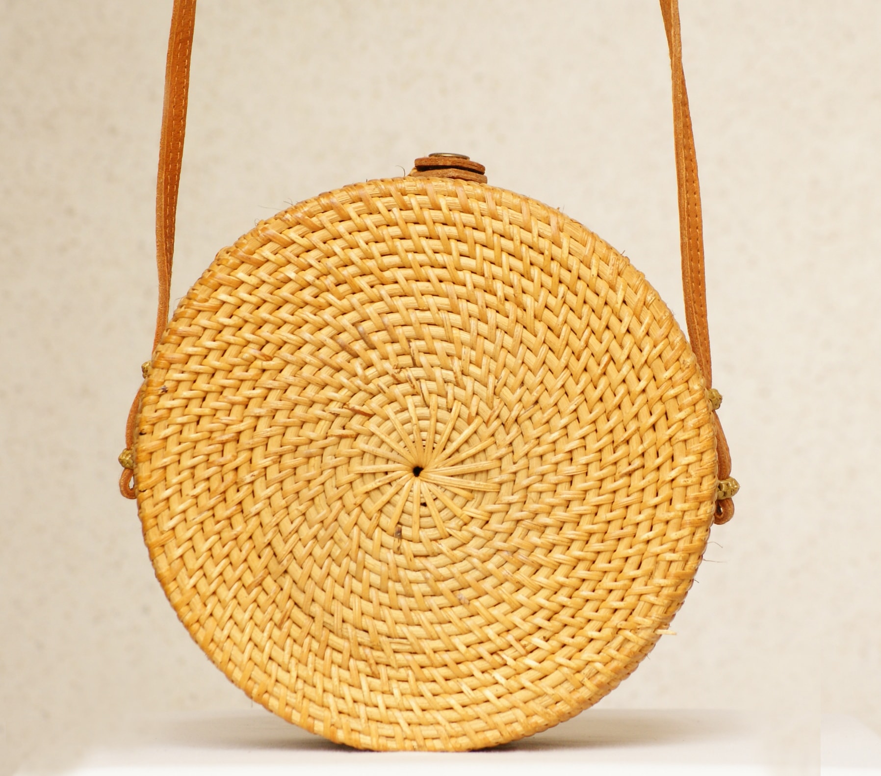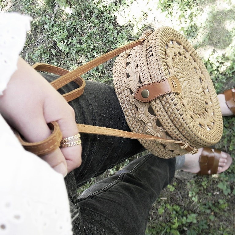 Ces mignons petits sacs ronds sont fait à la main avec passion et amour à Bali. Ils sont fabriqués à partir de tiges d’Ata (similaire au rotin) trouvées dans une forêt située à l’est de l’île de Bali. Cette plante est très résistante à l’humidité et très durable dans le temps.