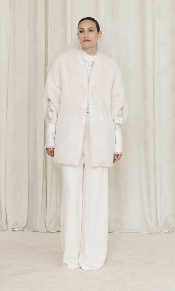 It’s a 100% silk crepe flawless cut pants! Made for everyone! Combine with several tops offered at the showroom! Also available in a tailor’s wool version.