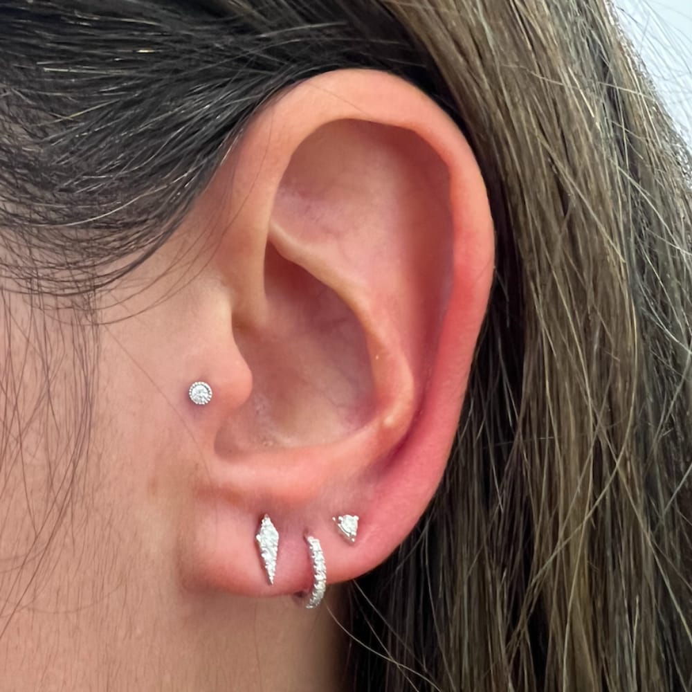 Stud est un tout petit clou d’or orné d’un diamant serti clos. Simplissime, il évoque avec chic la « rock attitude » Seijna.