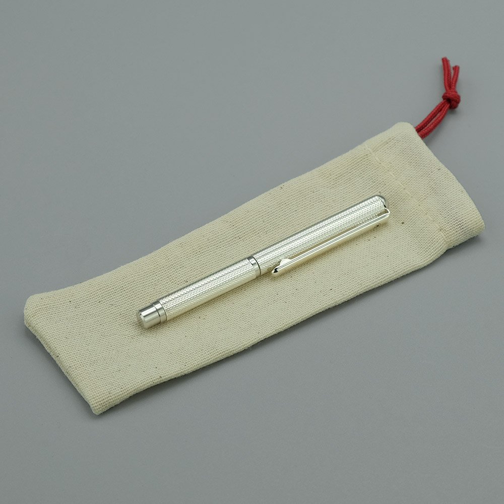 Ce stylo à bille en argent massif guilloché, qui évite les rayures dans un sac ou une poche, est un cadeau d’une grande élégance. Avec ses 8.5 cm, il accompagne parfaitement un petit carnet, agenda ou une pochette.