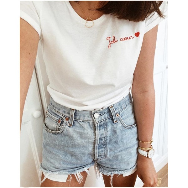 Le t-shirt blanc brodé adore le denim, associez-le avec un jean et des sneackers pour un look décontracté. Glissez votre t-shirt dans votre jean ou nouez-le au dessus de votre jean taille haute.