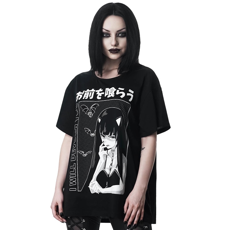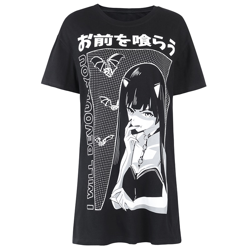 Vous êtes fan de T-shirt stylé et moderne ? Ne manquez pas cet adorable T-shirt grunge de note collection classée parmi les vêtements grunges de cette saison. Simple et mignon, ce T-shirt noir est parfait pour représenter le style grunge. Qu’importe la saison et le temps qu’il fait, ce modèle est ultra tendance pour cette année. Pour vous qui aimez le style asiatique, cette pièce est conçue spécialement pour vous avec son motif Asian girl du devant. Avec sa coupe légèrement ample, ce T-shirt convient à la plupart des filles pour une tenue décontractée. Que ce soit pour vos sorties entre amis, en soirée ou que vous passiez simplement votre journée chez vous, ce T-shirt vous procurera confort et douceur. Notre conseil : portez-le avec un mini short ou un pantalon jean stylé pour une tenue urbaine et décontractée. Vous pouvez également l’accompagner avec des bottes noirs pour faire ressortir le style grunge.